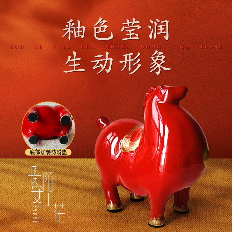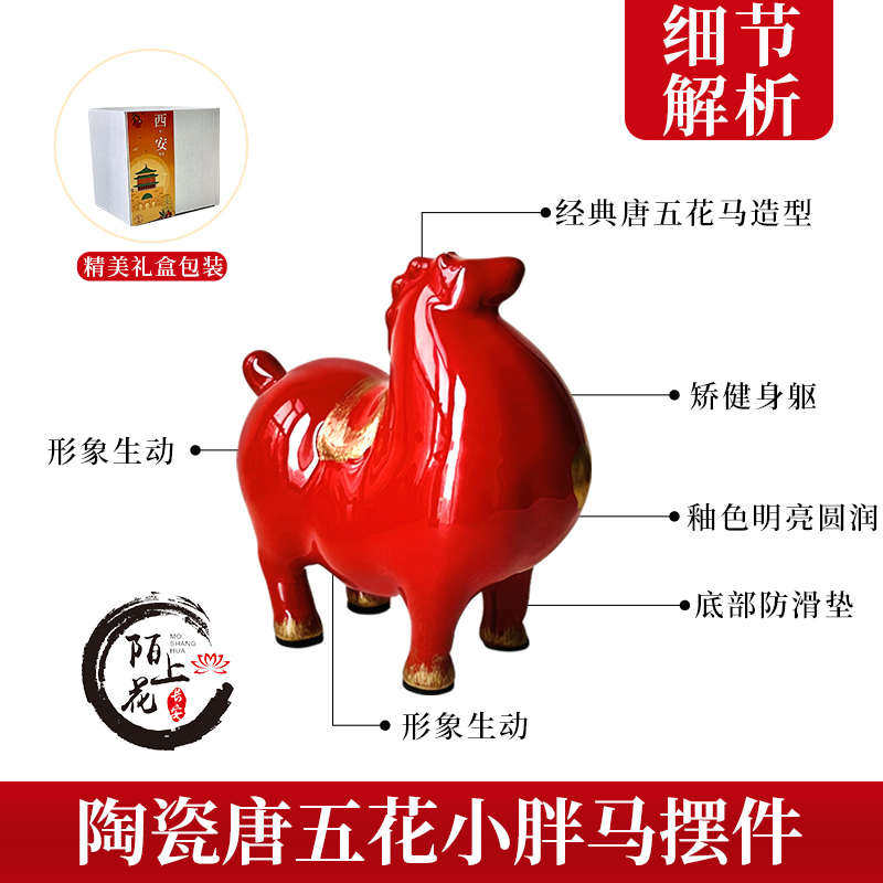 陶瓷唐五花小胖马红色马陶瓷工艺品客厅家居小饰品送礼小唐马摆件