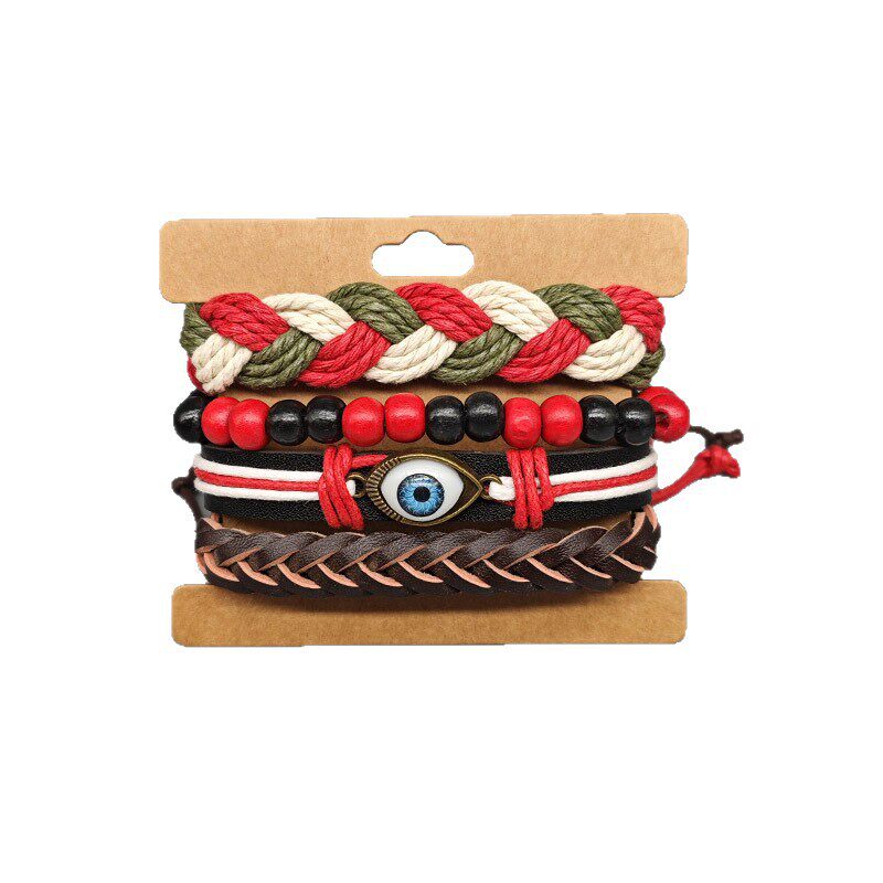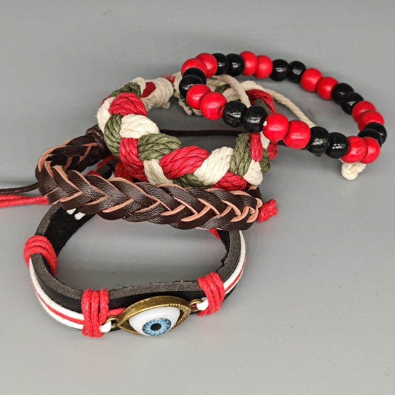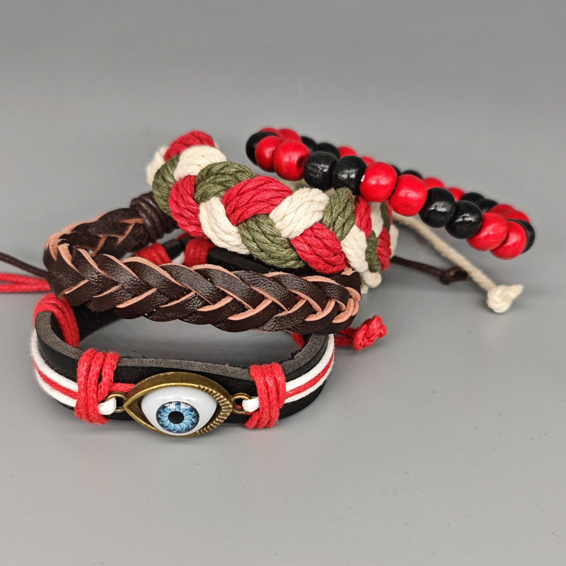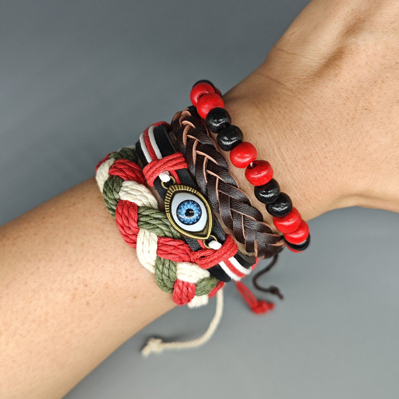 波西米亚风皮革手链眼睛套装复古编织可调手环欧美日韩版网红情侣