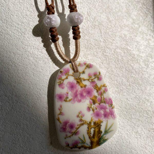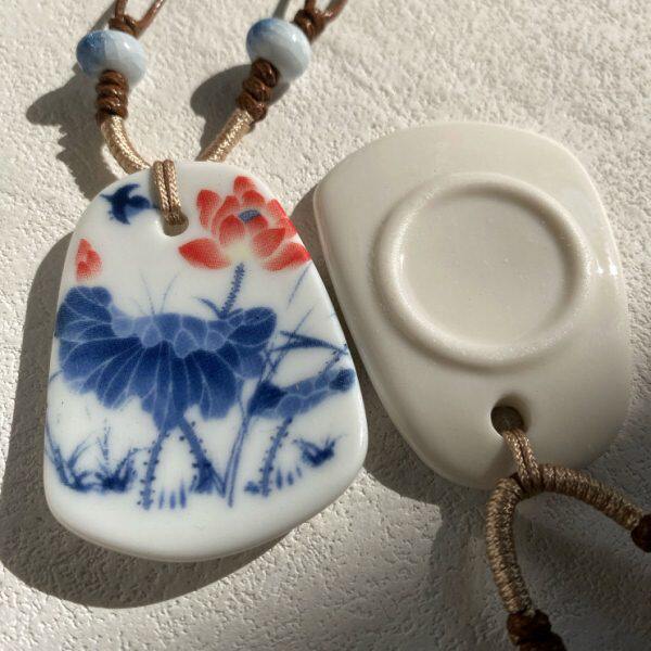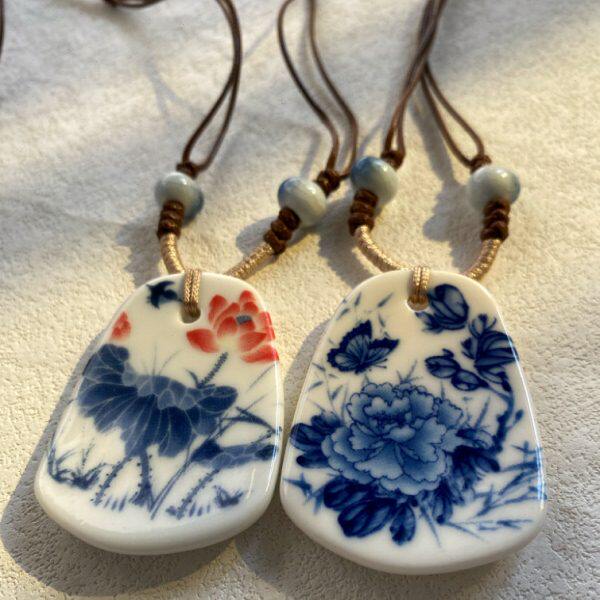 毛衣链复古民族风个性蓝色青花瓷牡丹花陶瓷饰品麻绳项链挂件女