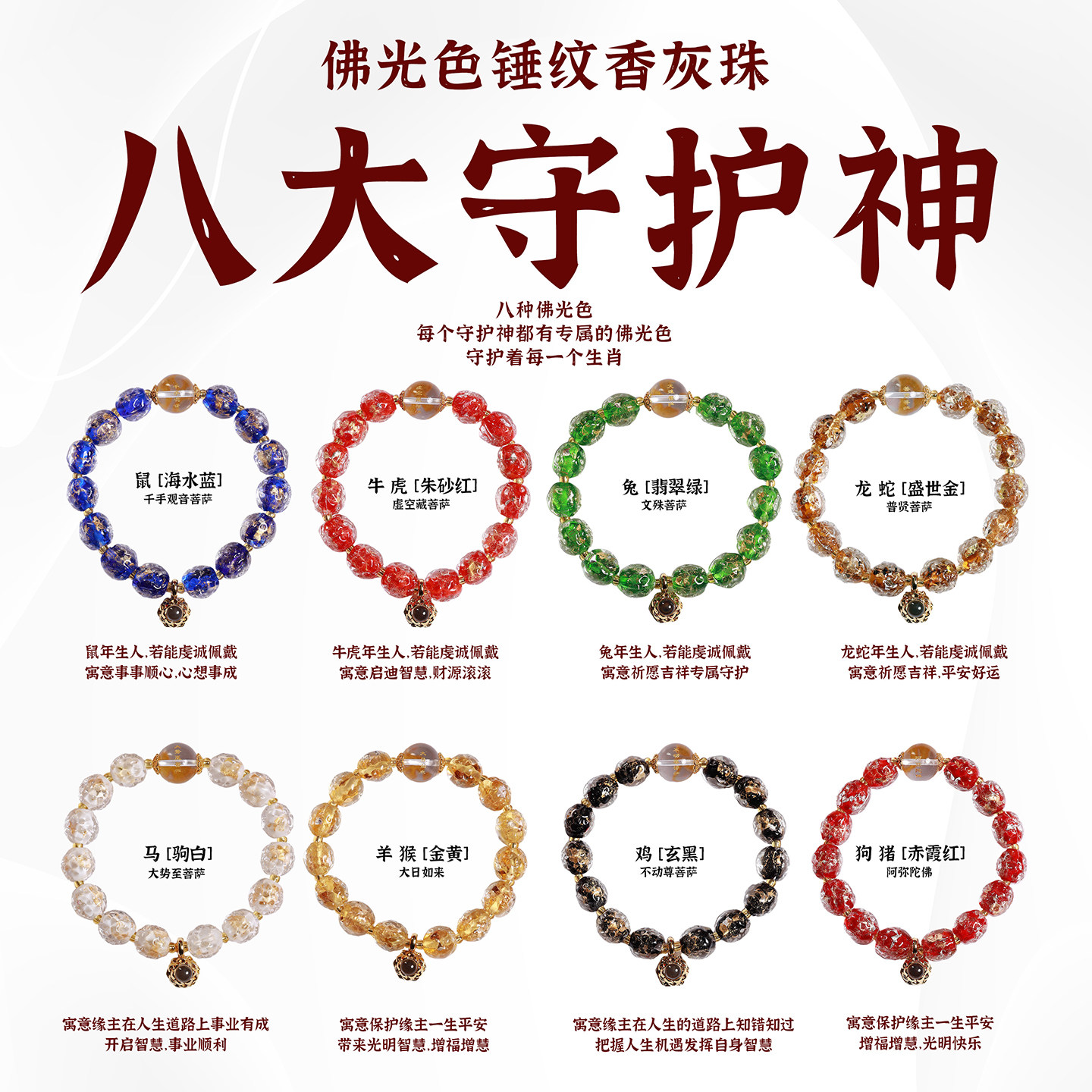 灵隐十二生肖转运珠本命年香灰金箔琉璃八大守护神手串避挡手链