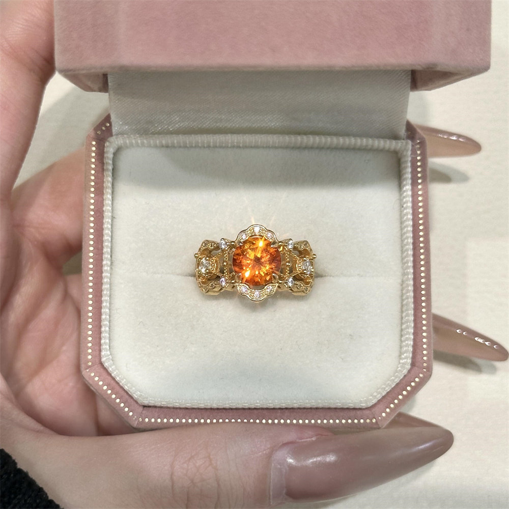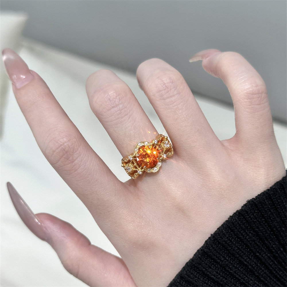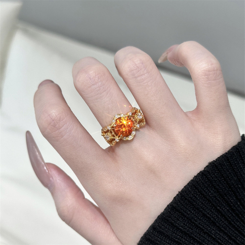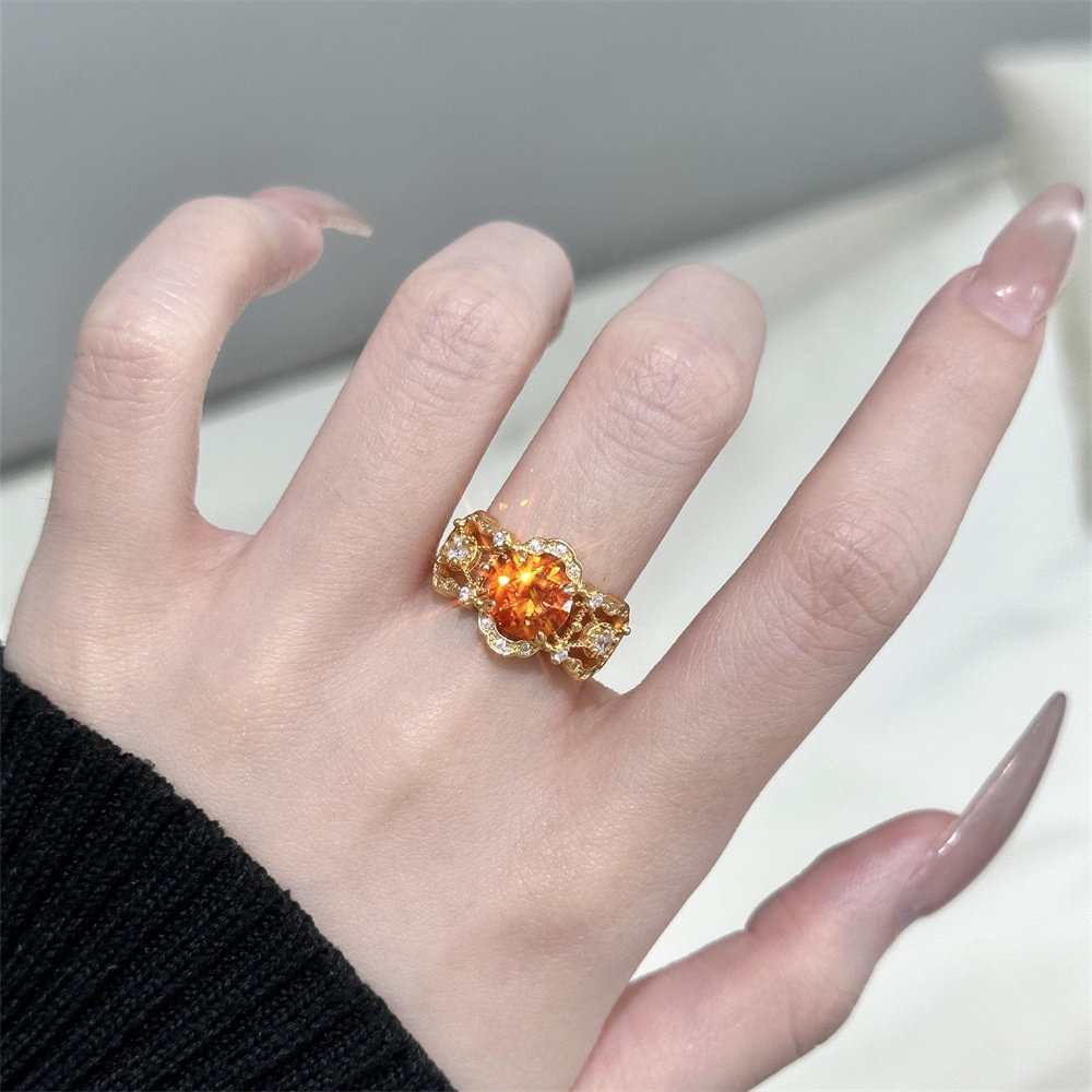 zoozmini中古vintage显白橙色锆石镂空点钻戒指精致轻奢气质指环