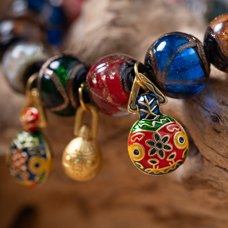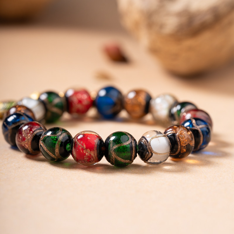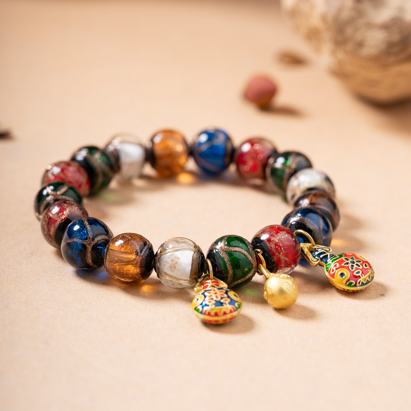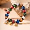 香灰琉璃12mm五彩多宝珠吞金兽单圈手串弹力绳民族风叠戴男女手饰