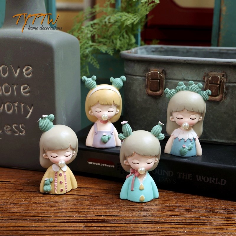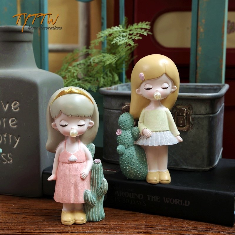 树脂仙人a掌女孩吹泡泡 艺术童话摆件礼物