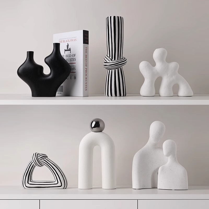 现代格调高级感黑白色艺术软装饰品摆件高档轻奢家居客厅酒柜摆设