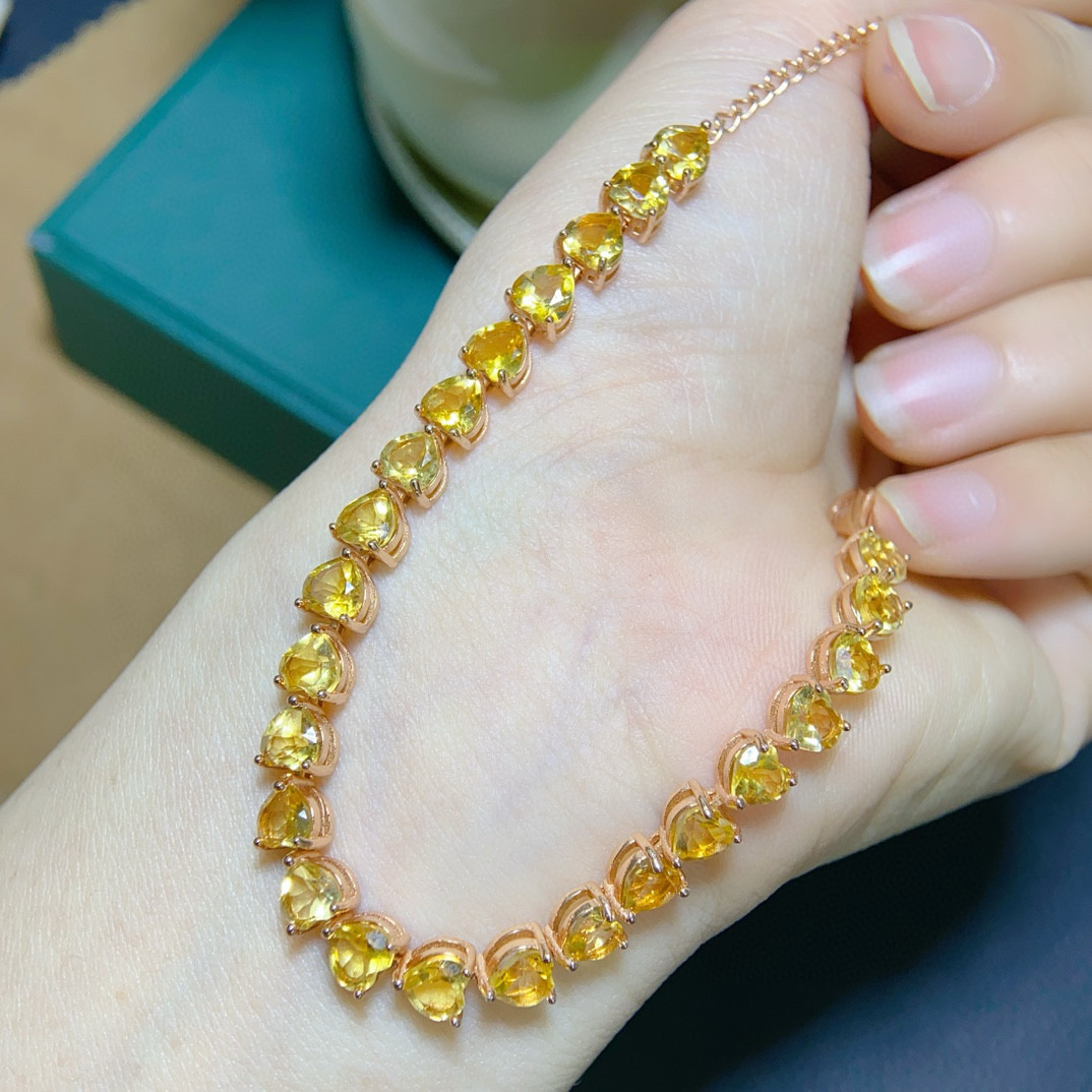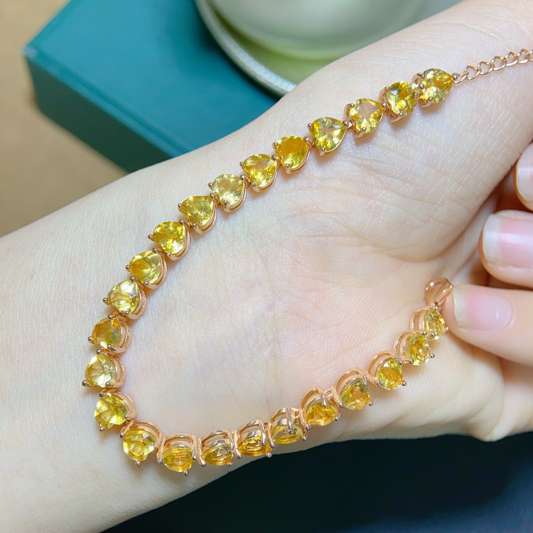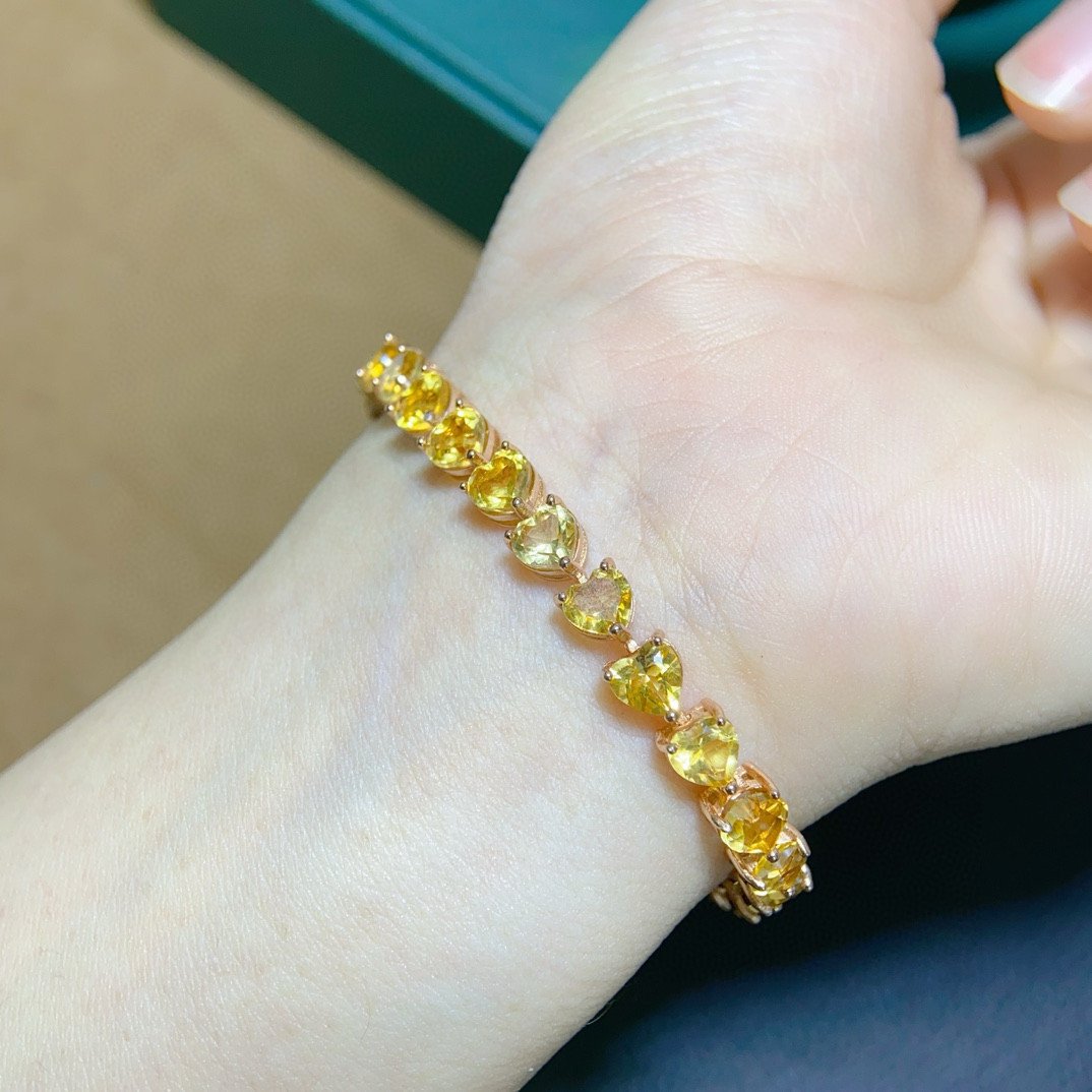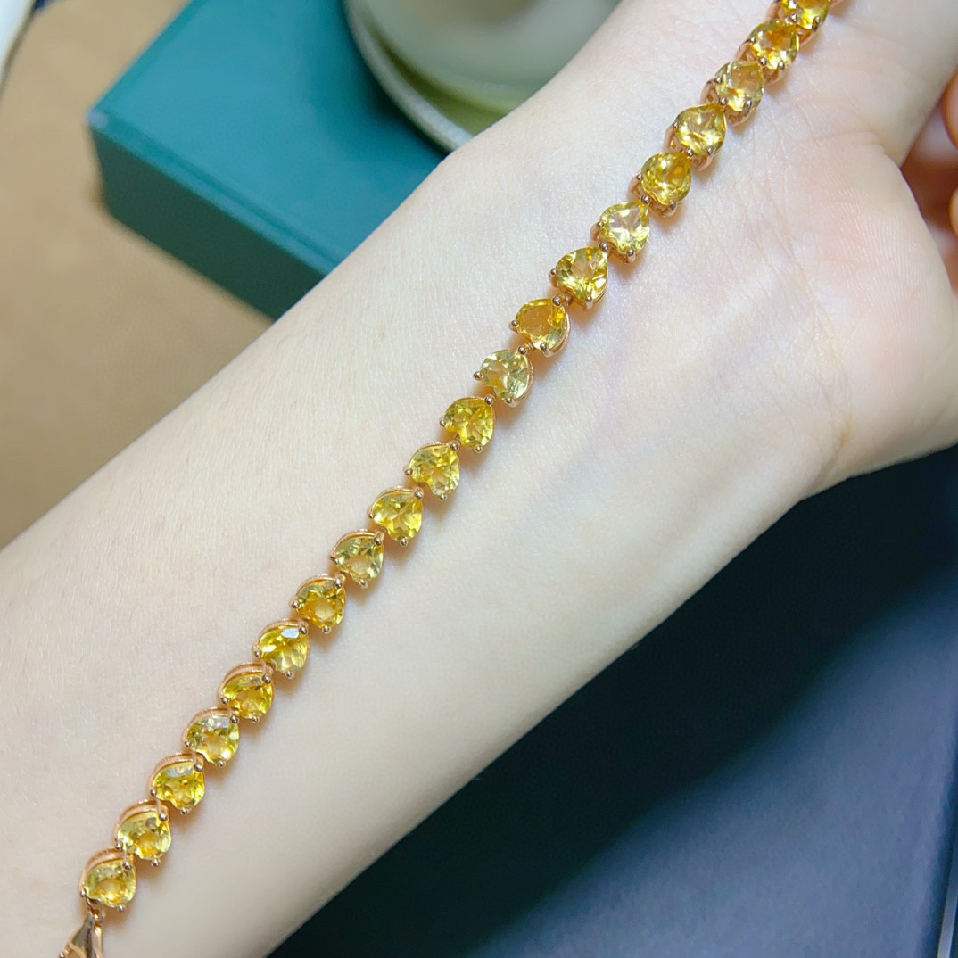 纯天然巴西黄水晶手链出货全净体品质925银精工镶嵌,主石5*5mm