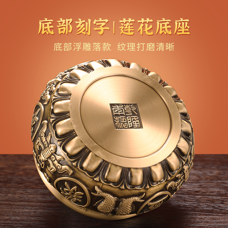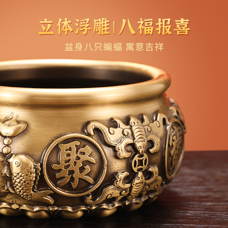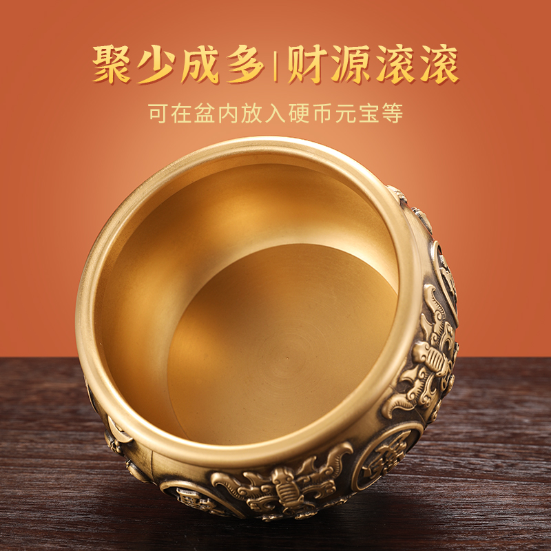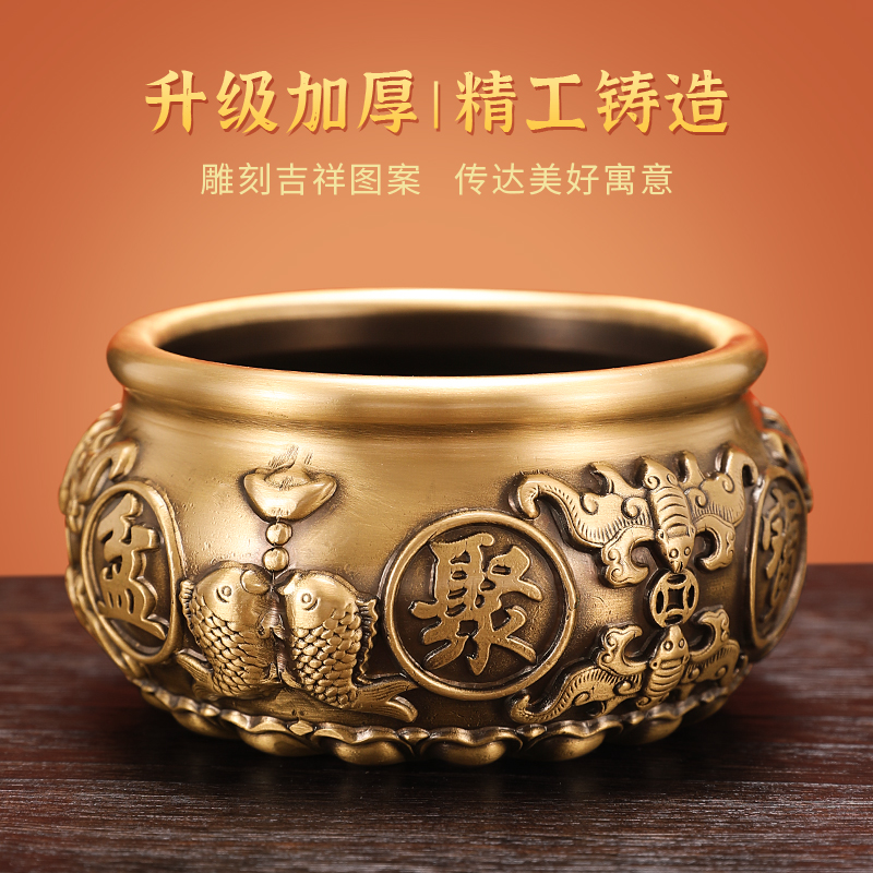 纯铜聚宝盆家用客厅工艺r品摆件聚财招财缸黄铜米缸存钱罐铜盆铜