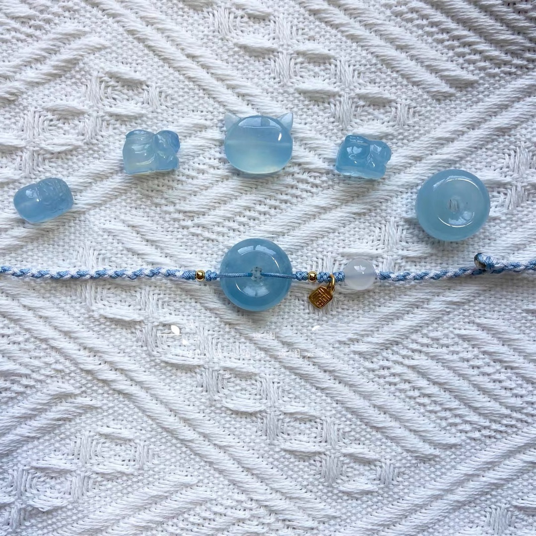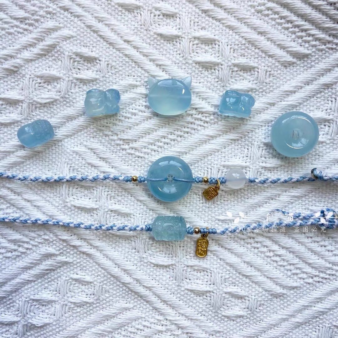 天然海蓝宝平安扣手绳手工编织手链闺蜜生日女朋友礼物