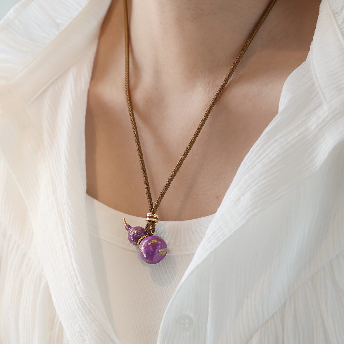 紫气东来~新中式紫色珐琅葫芦编绳项链精致小众长款毛衣链母亲节