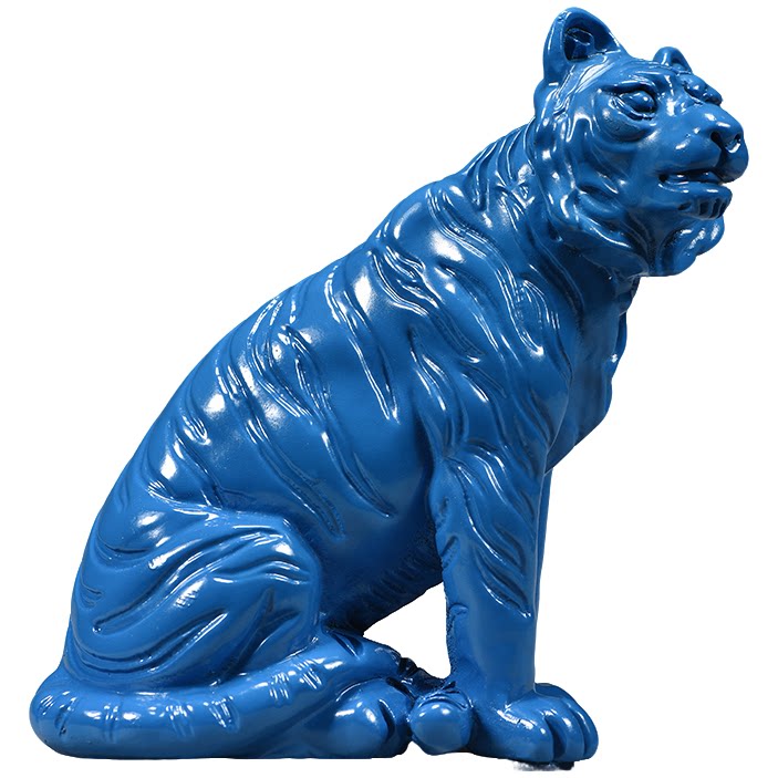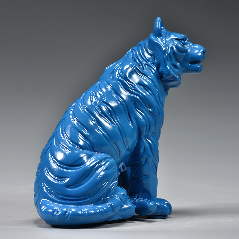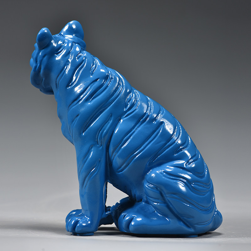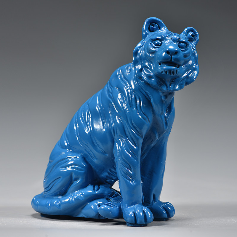 蓝色木质老虎摆件实木雕刻十二生肖木头坐虎吉祥物木制装饰工艺品