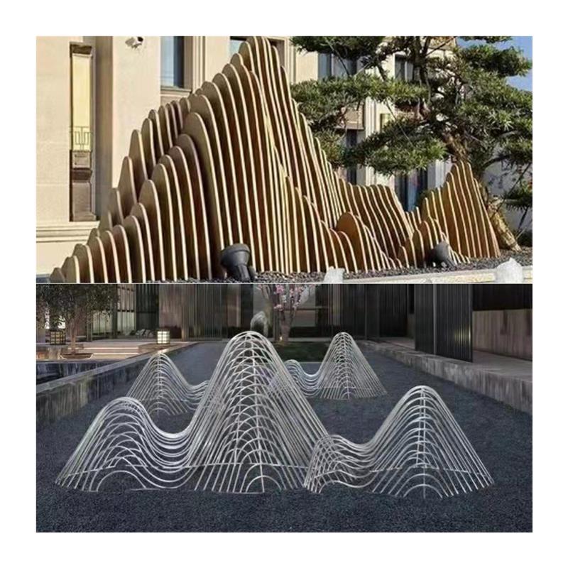 大型不锈钢切割假山饰品售楼处水景管切山雕塑景观小品定制