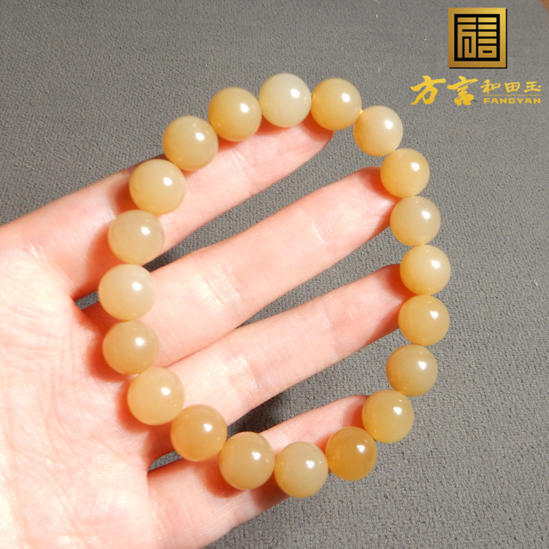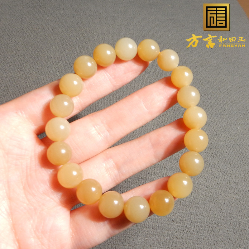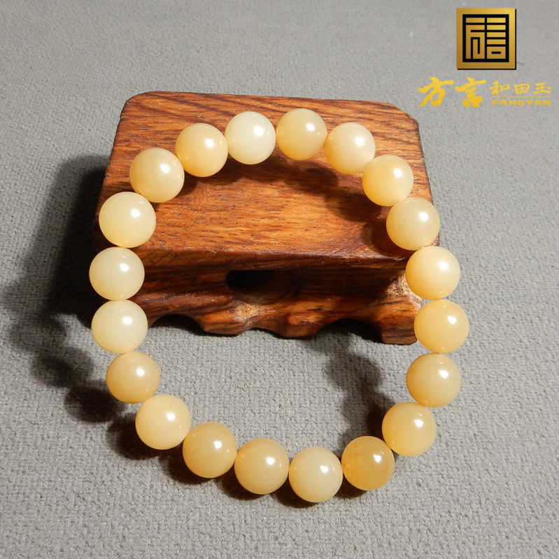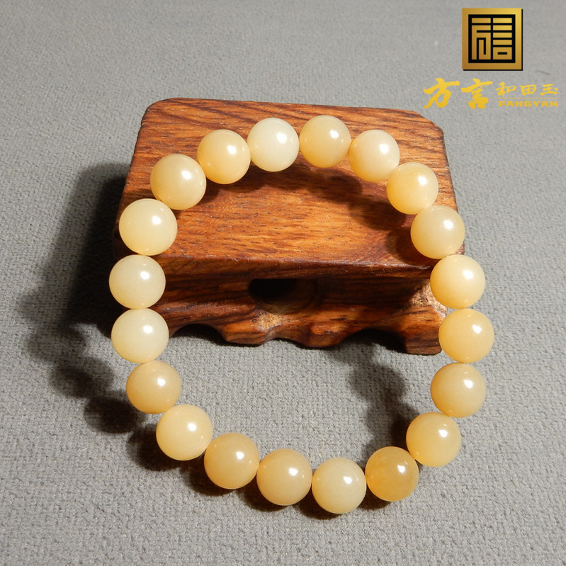 放漏方言和田玉新疆且末料油润细腻白玉带糖卡10mm圆珠手链手串A2