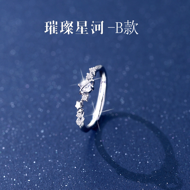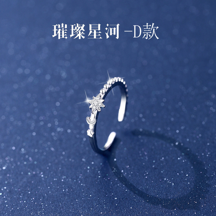 星星纯银闺蜜戒指女生一对二人三人四人款高颜值刻字学生党可调节