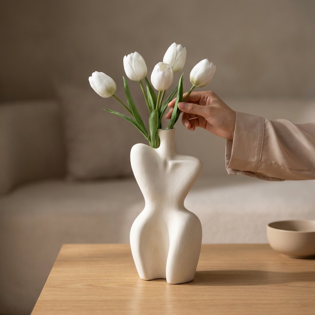 创意人体造型花瓶摆件家居装饰白色陶瓷客厅卧室桌面装饰品