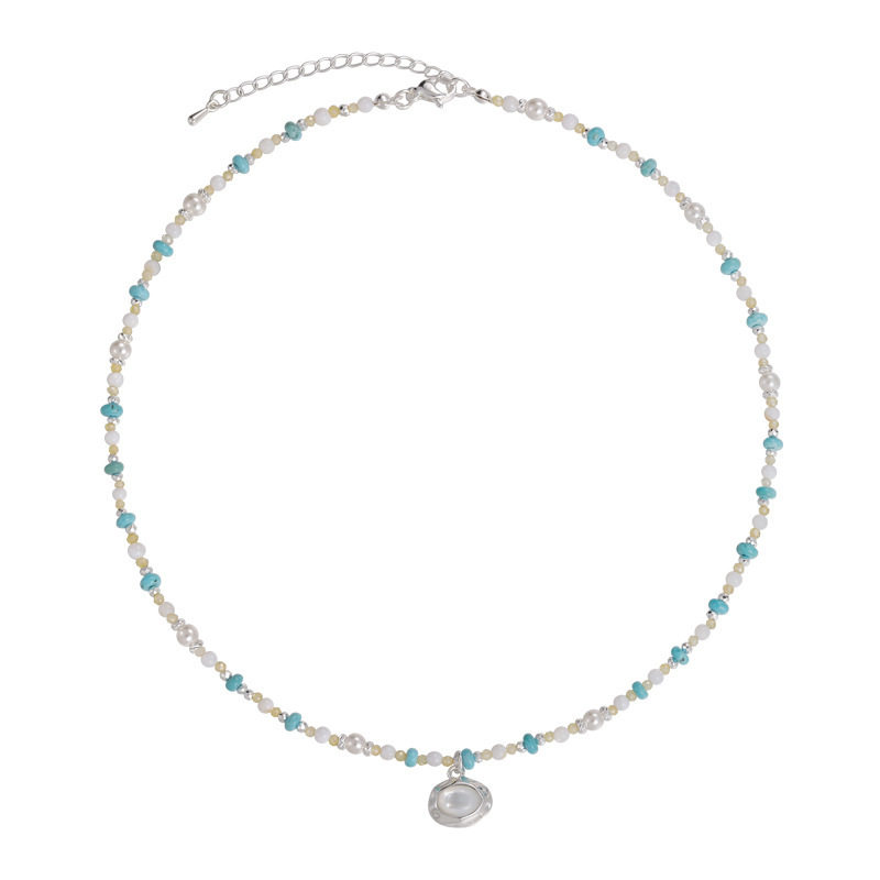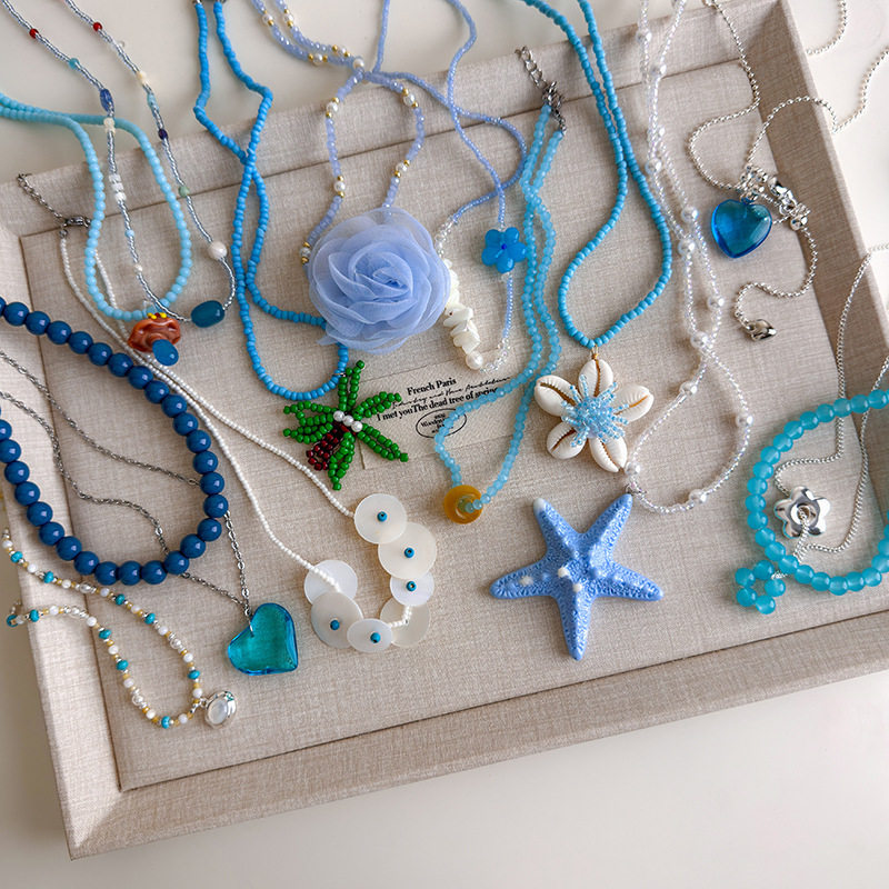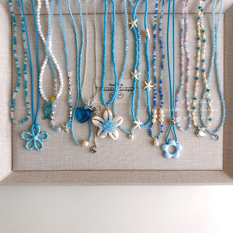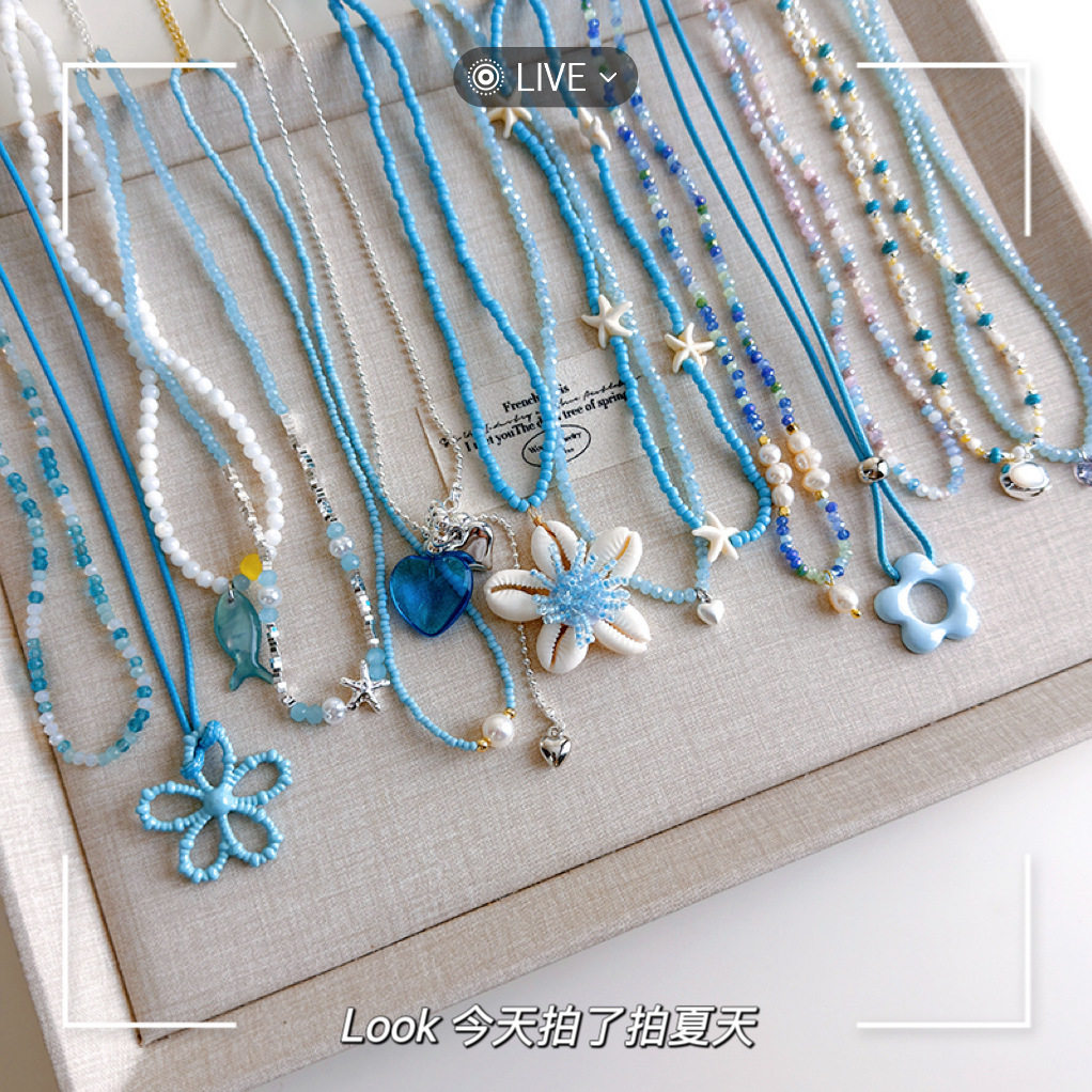 蓝色系串珠贝壳项链女度假风设计感颈链夏日多巴胺锁骨链甜美配饰