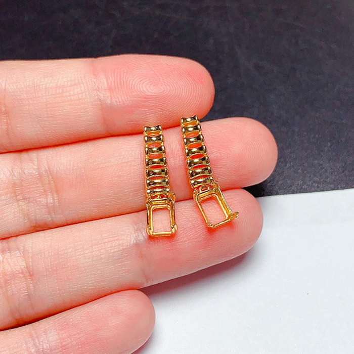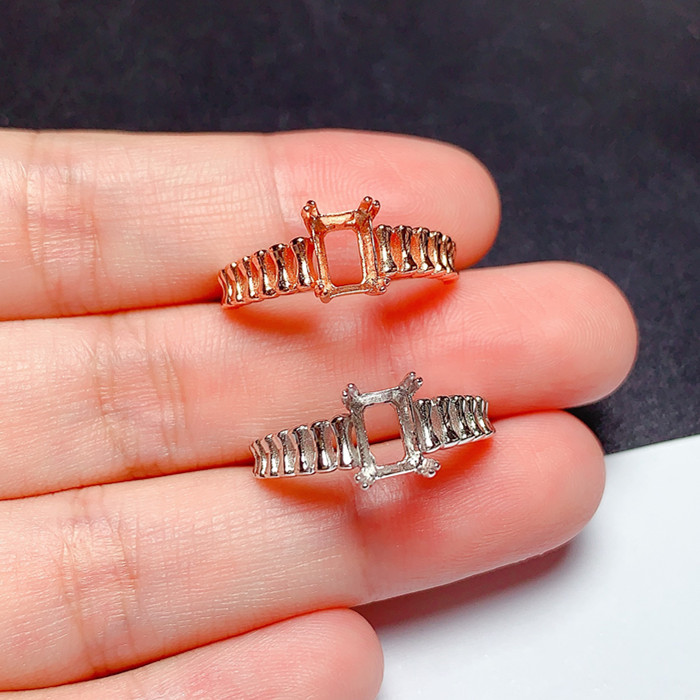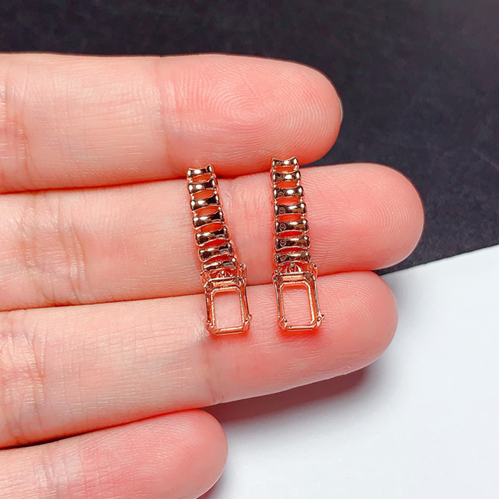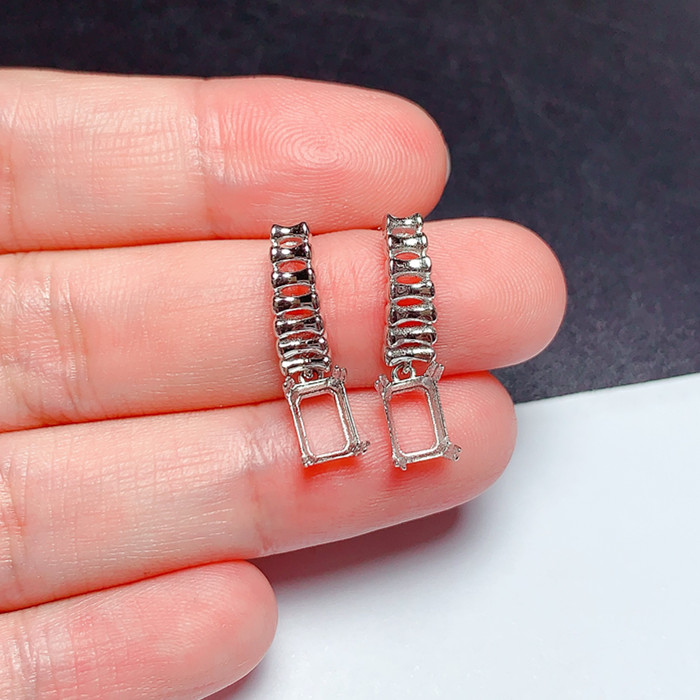银戒指耳钉空托长方形5*7mm小众简约个性925银 DIY饰品 m