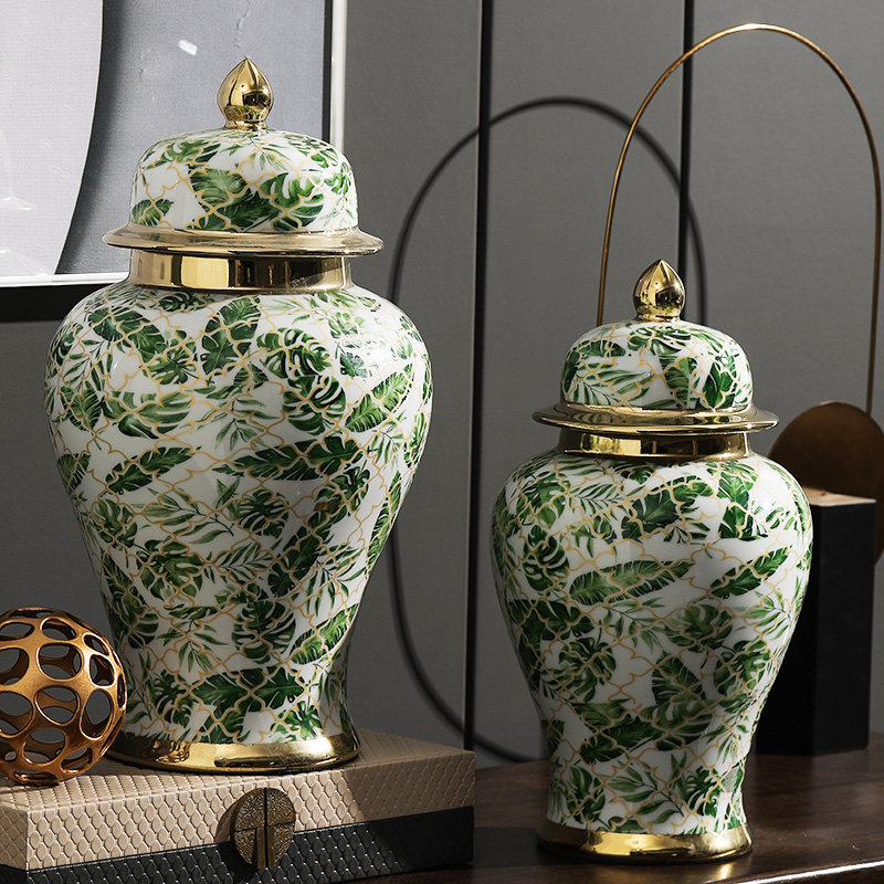 新款将军罐景德镇陶瓷摆件青花瓷茶叶罐客厅玄关摆件插花瓶装饰品