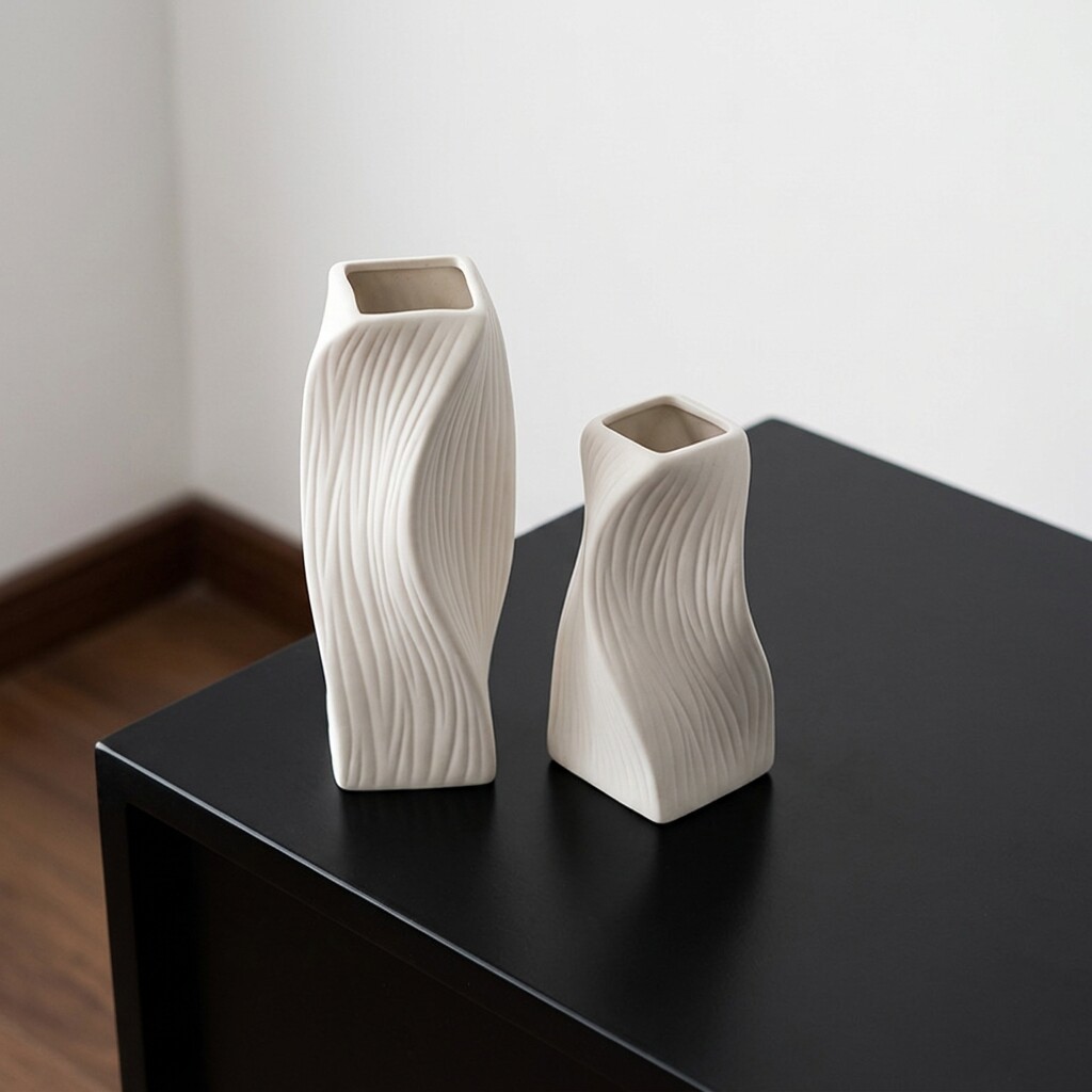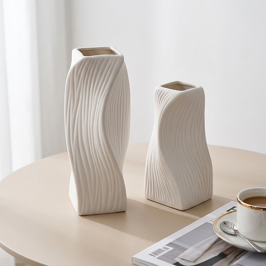 现代简约白色陶瓷花瓶客厅玄关桌面装饰摆件波纹造型