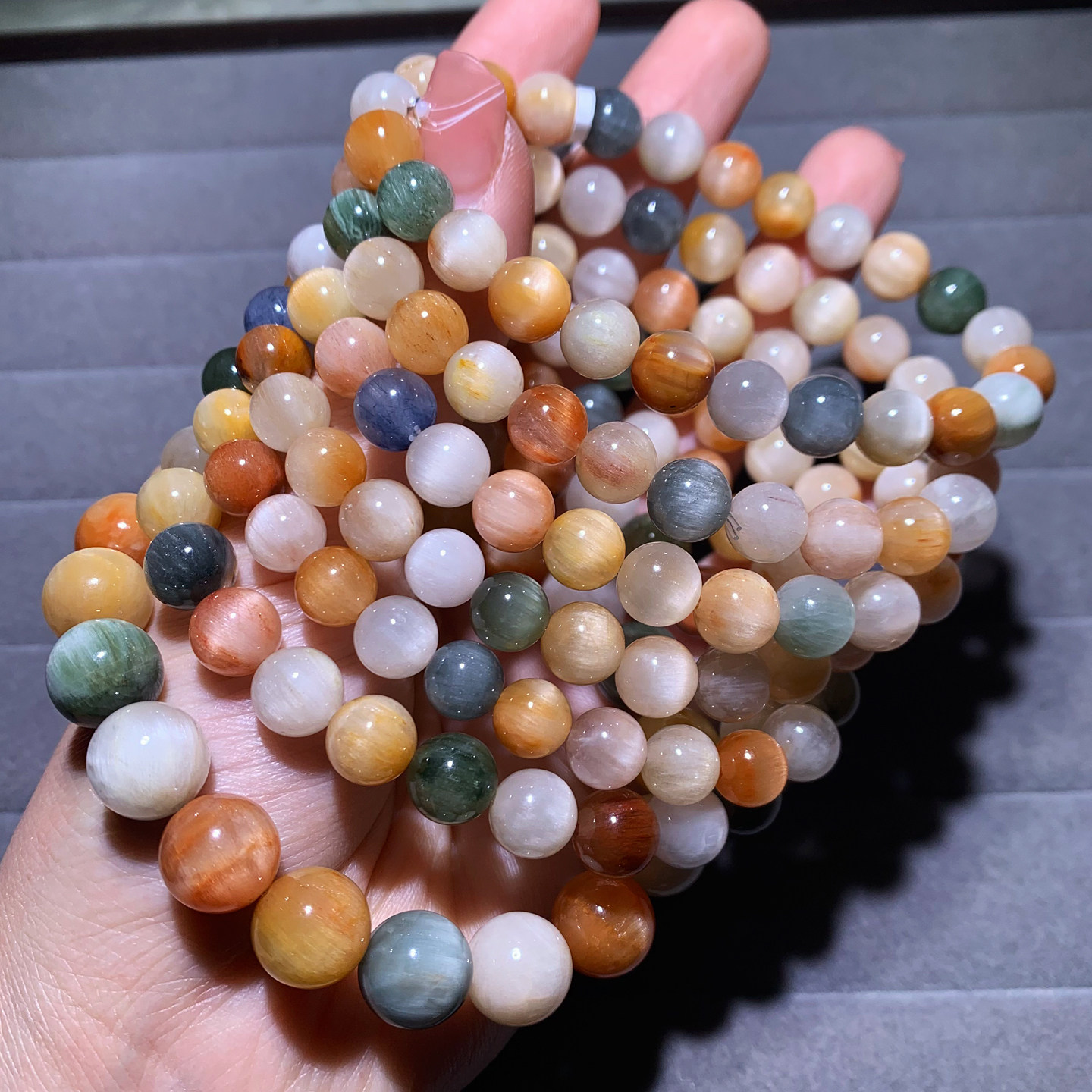 天然莹润顺发彩兔毛单圈水晶手串兔毛发晶落日秋手串情侣礼物男女