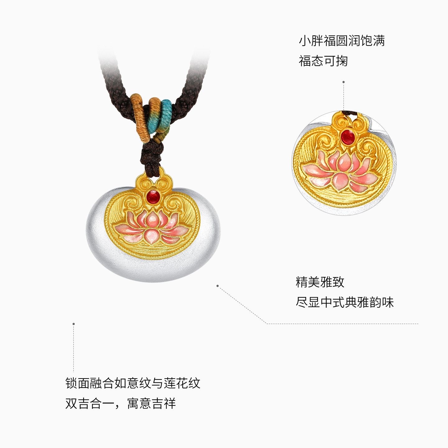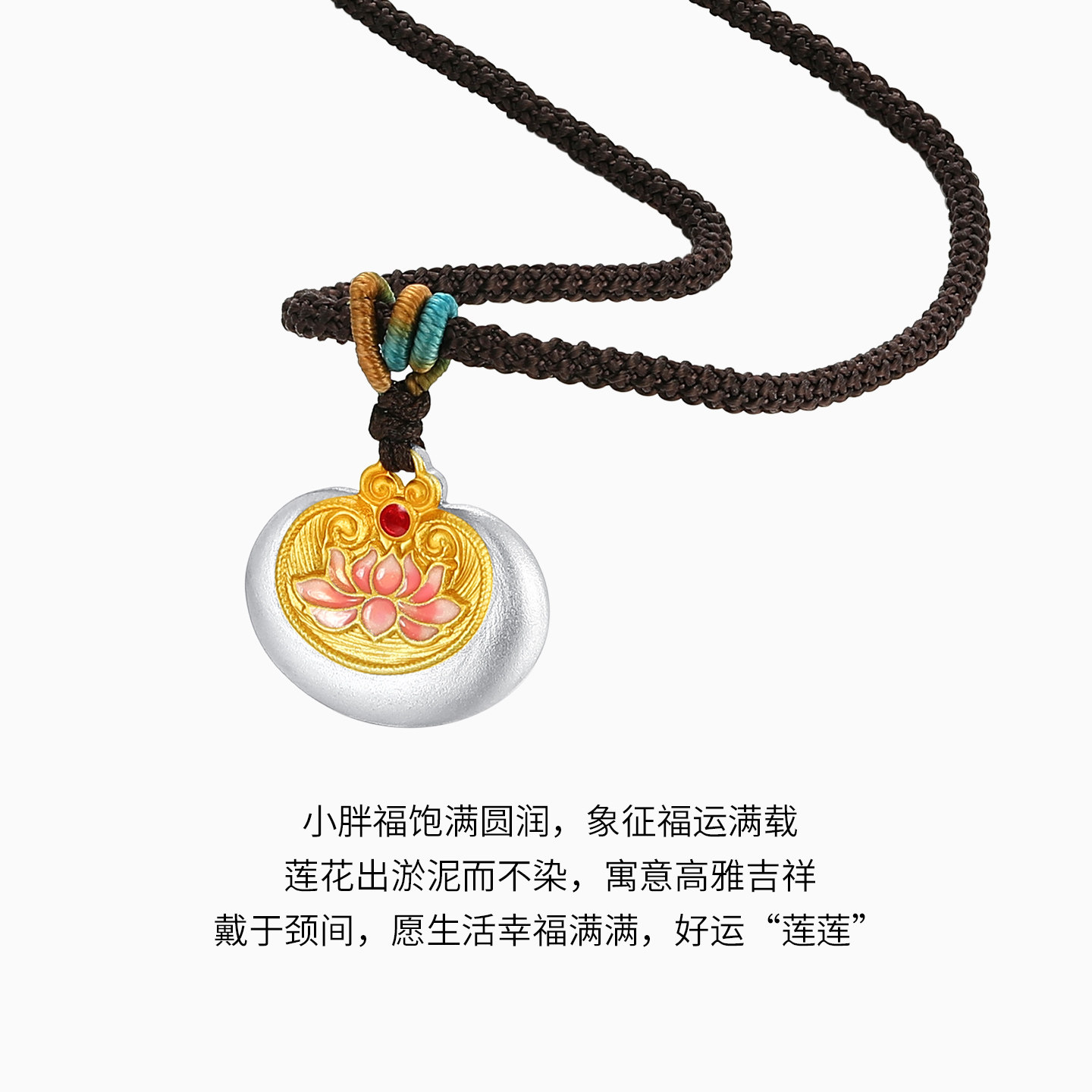潮宏基锦时小胖福足银项链银饰套链坠链毛衣链吊坠新中式女礼物