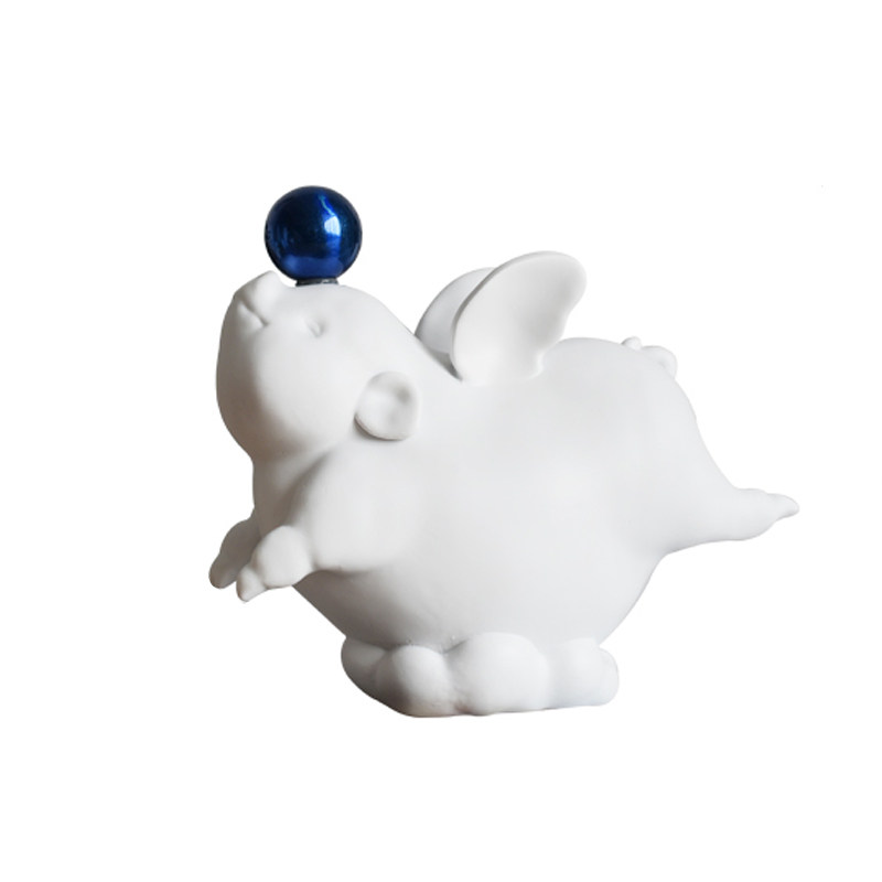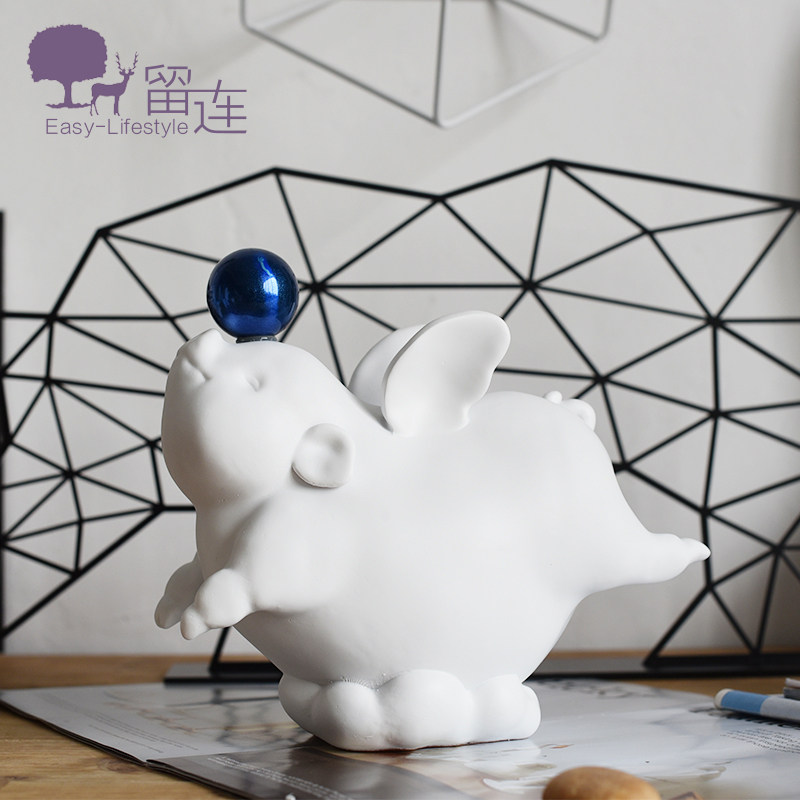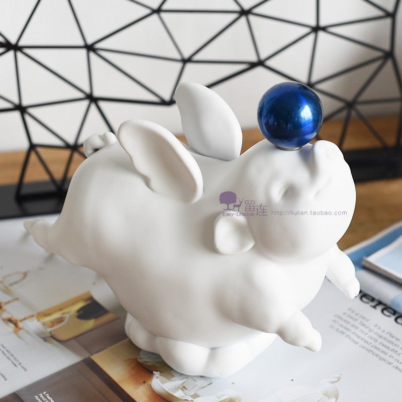 长翅膀小飞猪顶蓝球白色树脂雕塑艺术摆件客厅电视柜软装工艺品