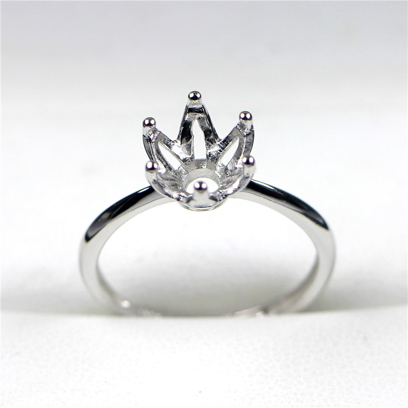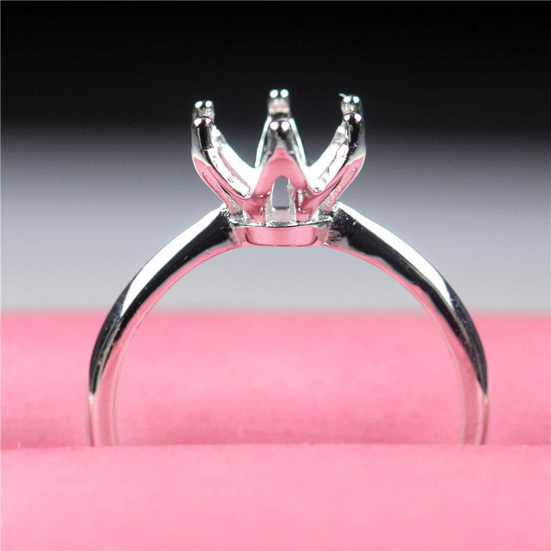 简约六爪戒指托空托925纯银未镶嵌钻戒托女士莲花莫桑钻戒拖活口
