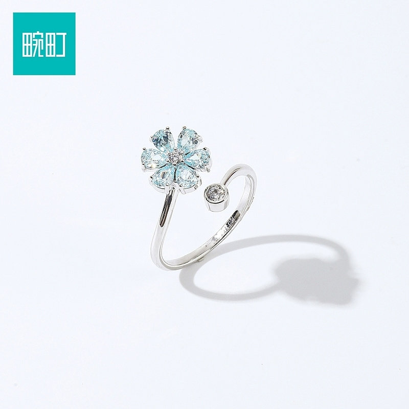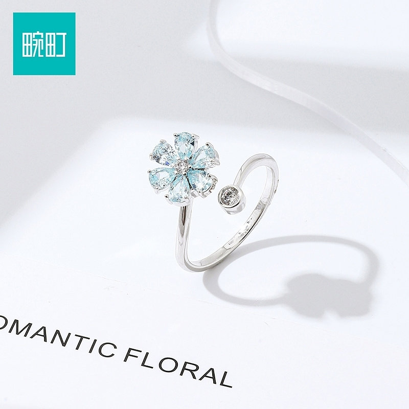 畹町烂漫田园蓝色花朵开口戒指