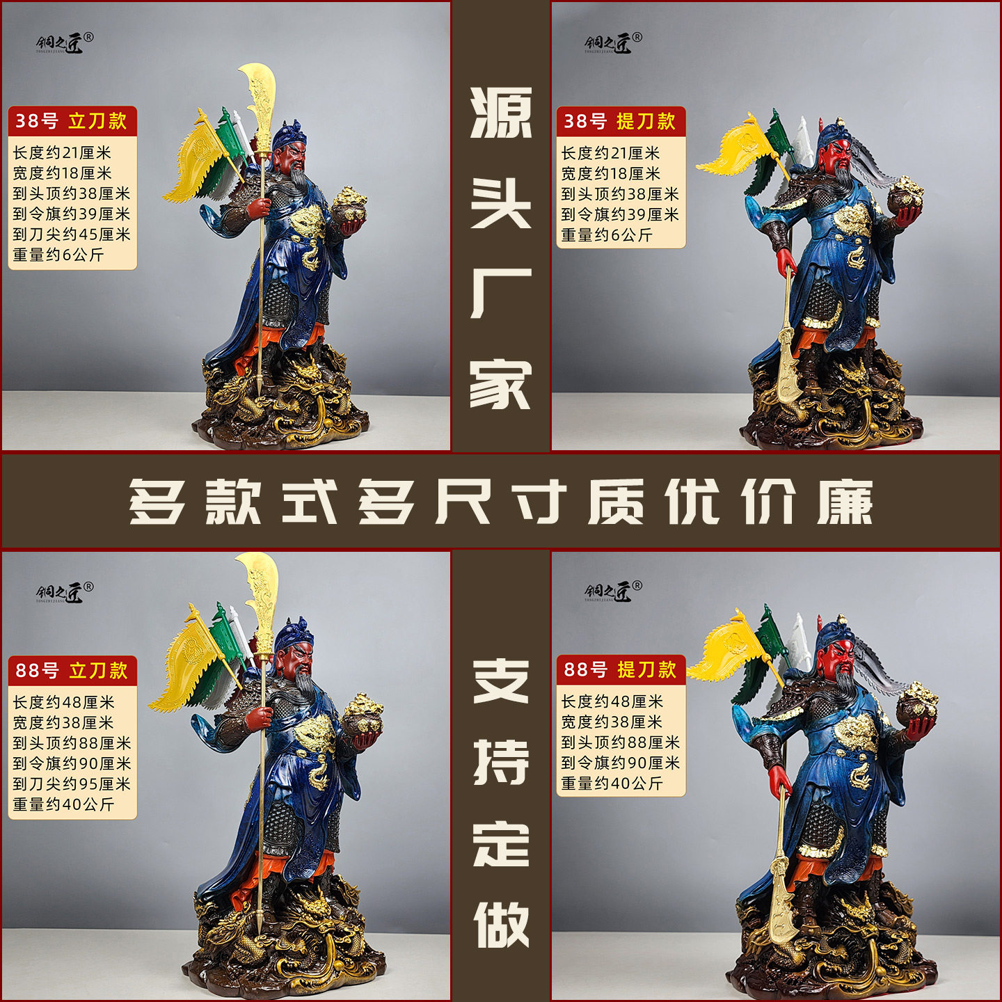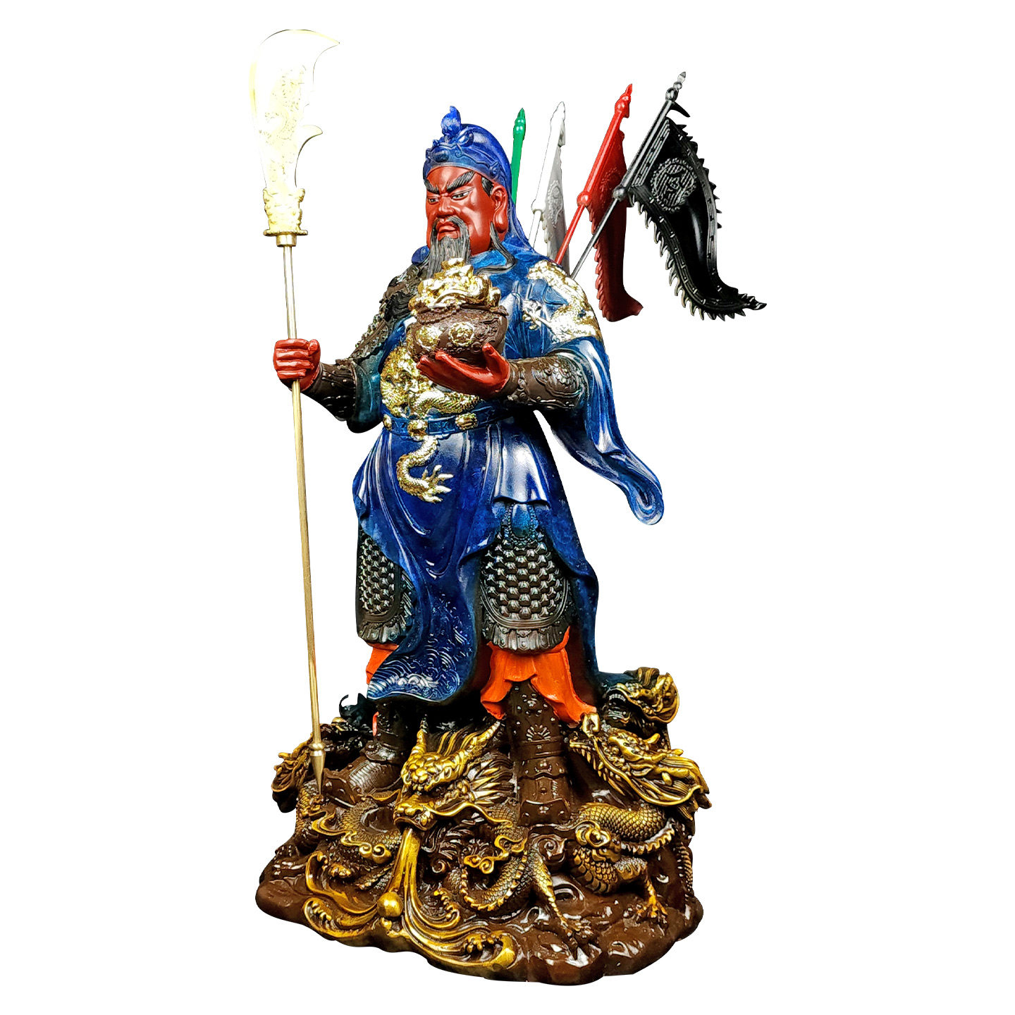 纯黄铜关公摆件红脸武财神关羽关二爷大号五行令旗九龙关公铜像