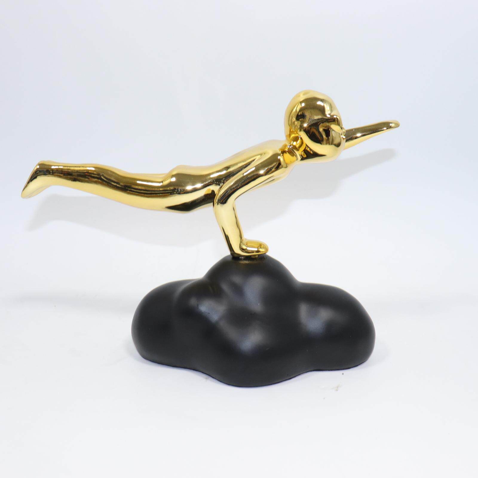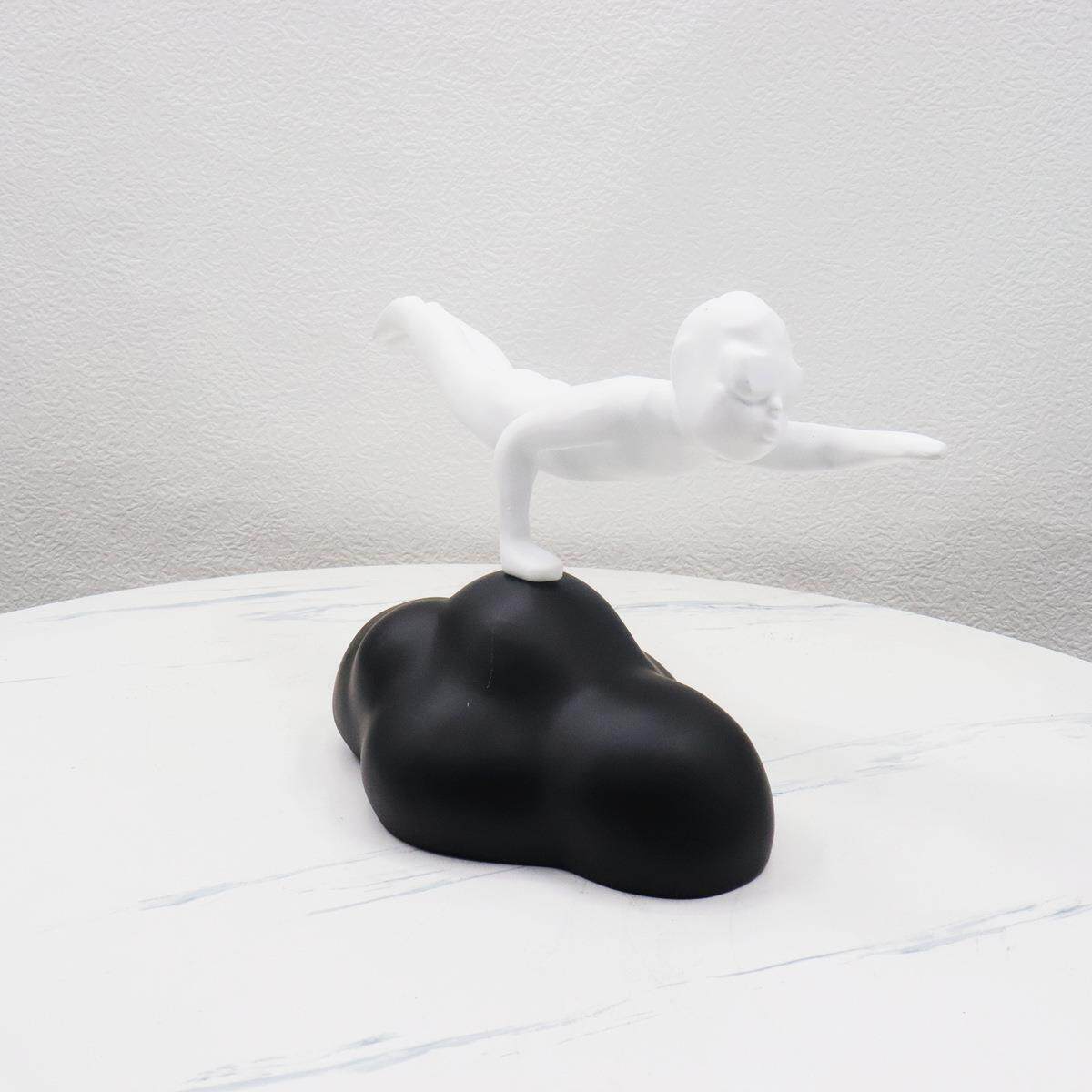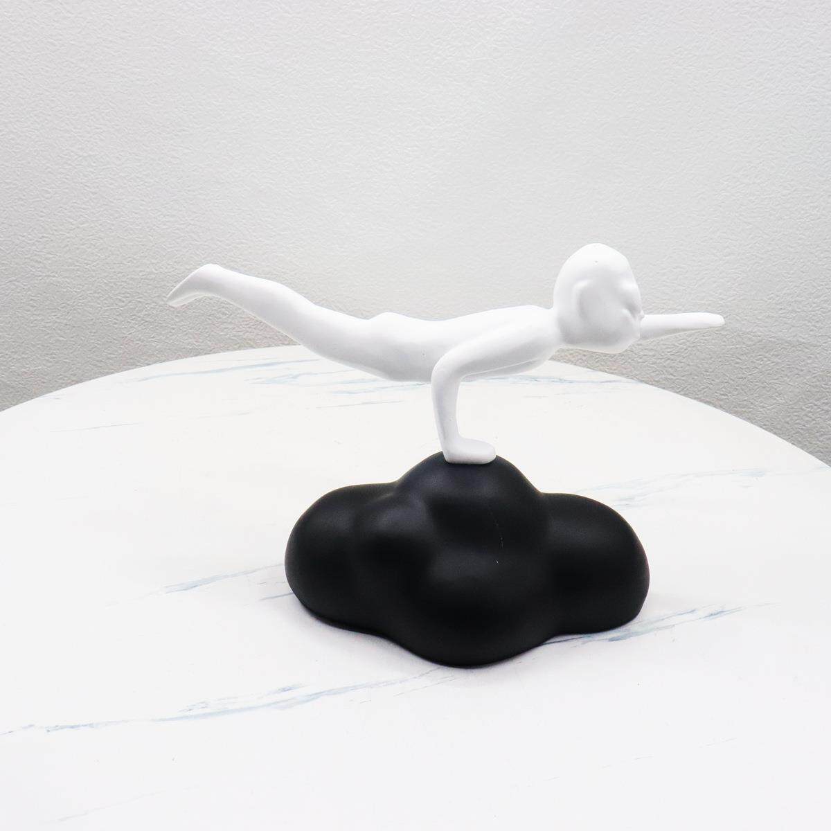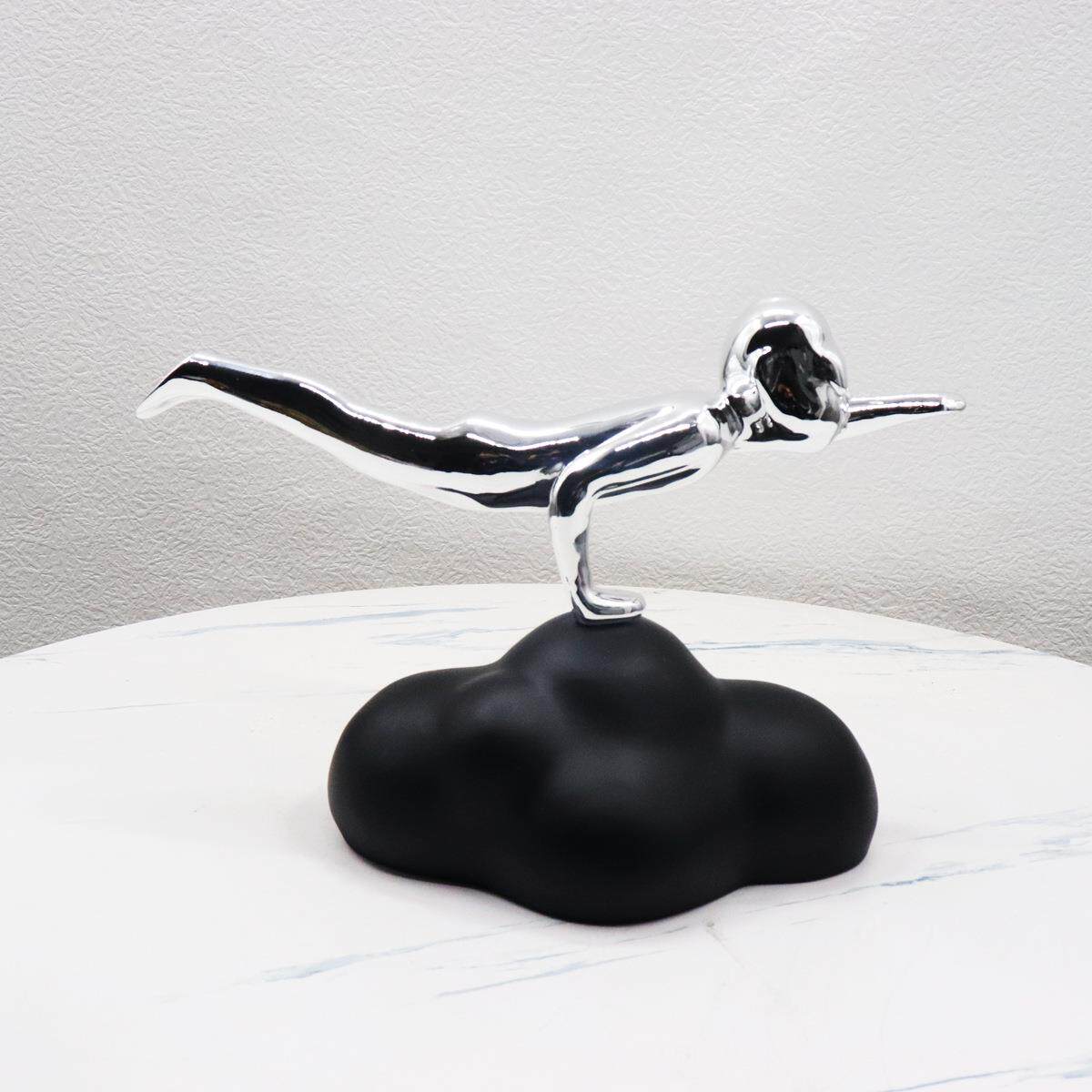 直销新款简约现代银色黑色树脂趣味云朵飞行员雕塑 客厅电视柜样