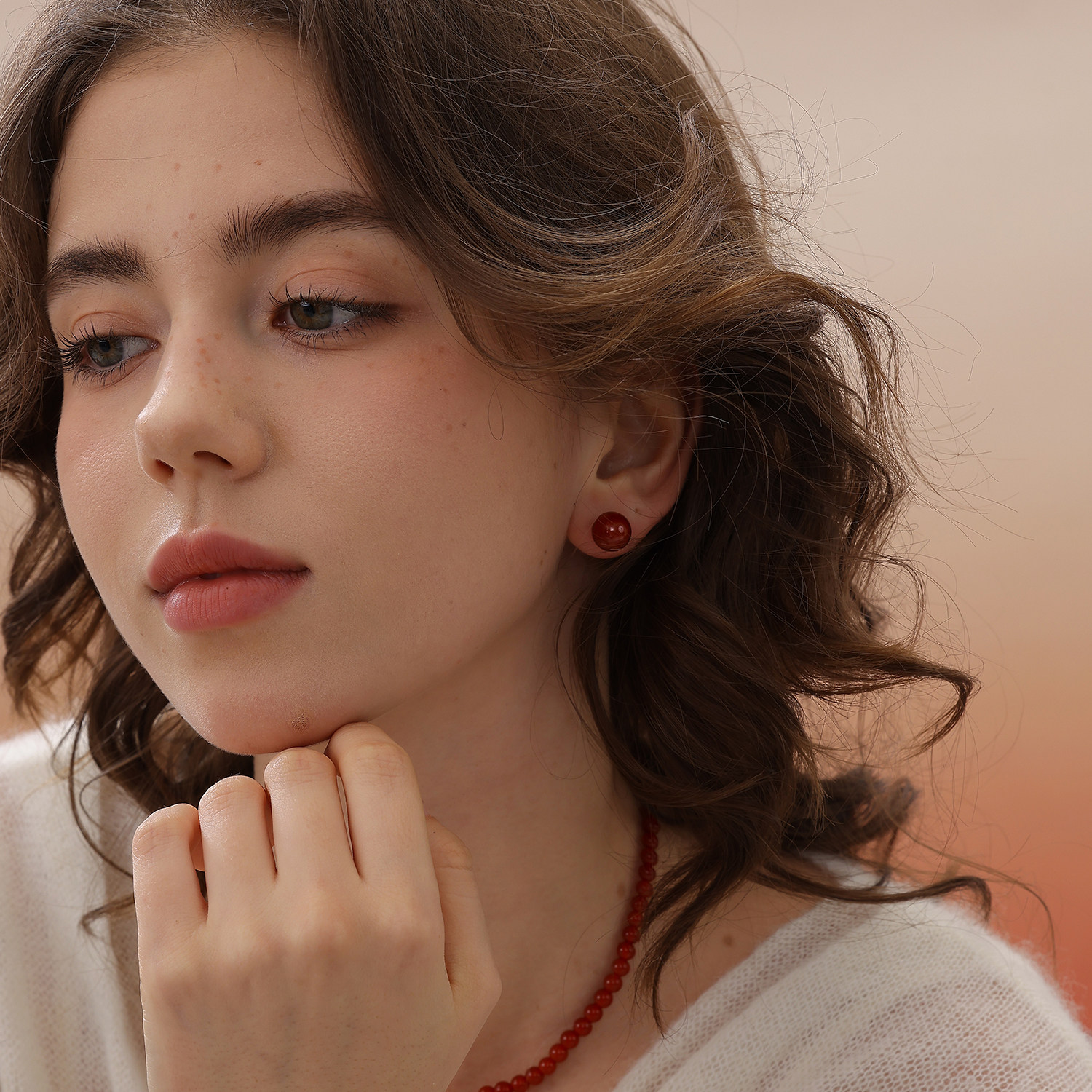 【明星同款】ARSIS红色珠链套装S925银玛瑙耳钉毛衣项链本命年女