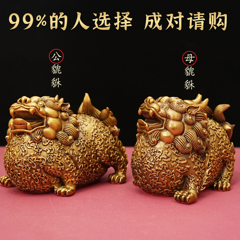 纯黄铜入户富贵貔貅家里摆件守财招财一对皮丘家居玄关店铺办公室