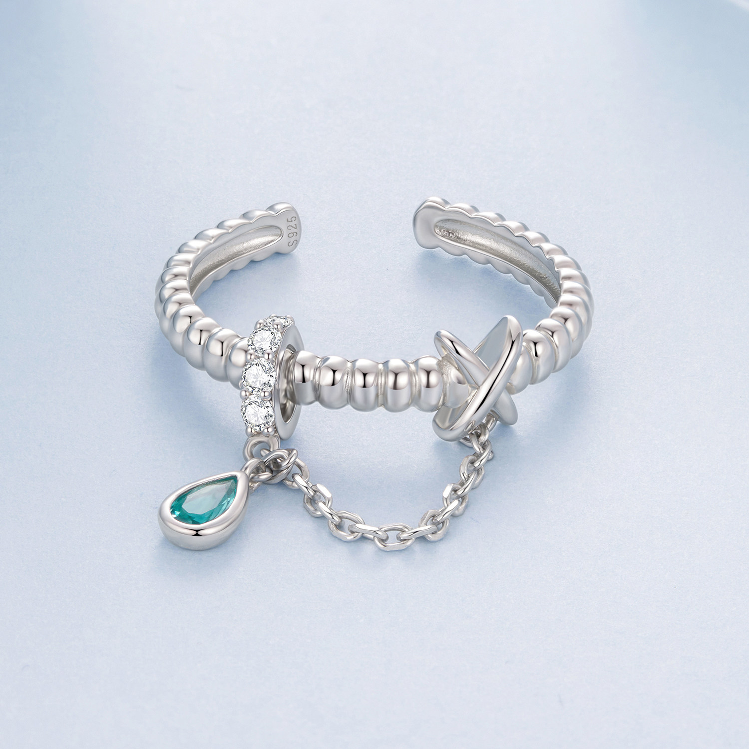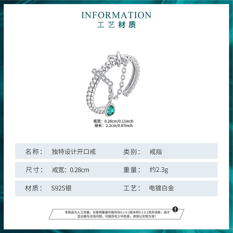 原创肌理设计感s925纯银开口戒指个性水滴锆石流苏指环戒指轻奢