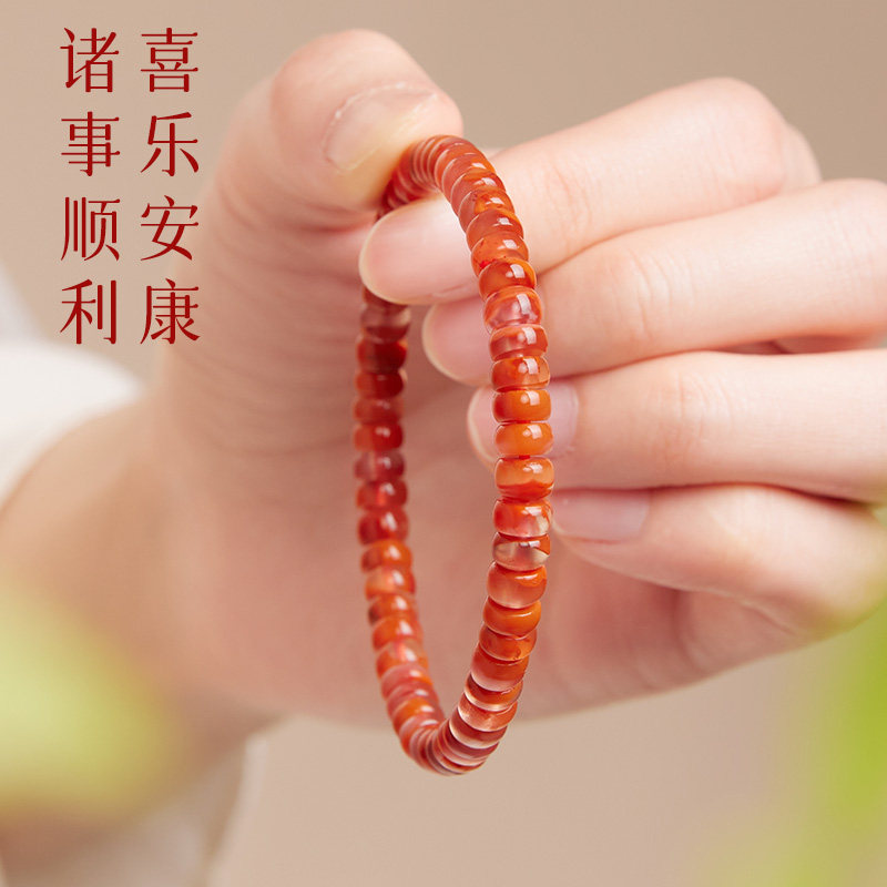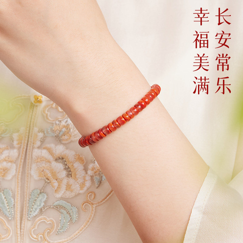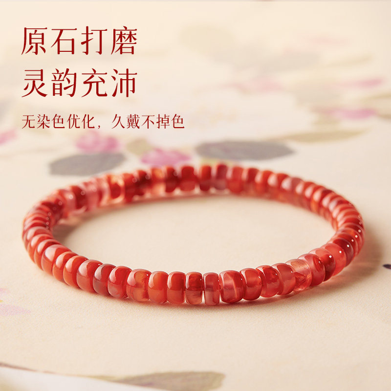 庆祥泰天然原矿手链女本命年川料南红手串红色水晶串珠送毕业礼物