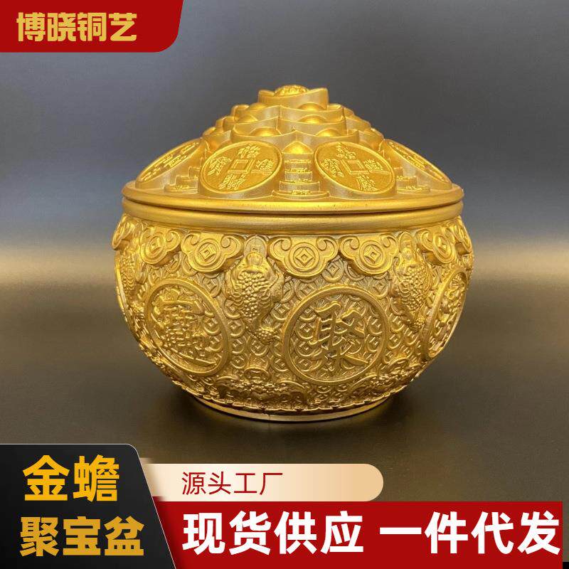黄铜金蟾聚宝盆摆件客厅米缸家用工艺品办公室开业礼品铜制招财