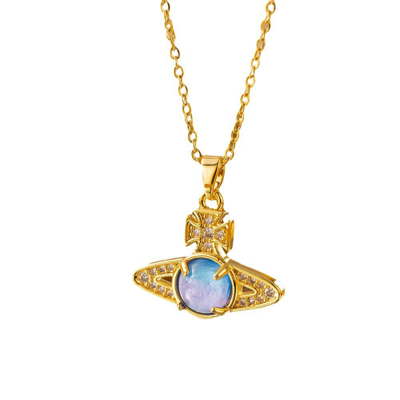欧美热卖西太后土星超闪满钻微镶项链女轻奢高级感百搭精致锁骨链