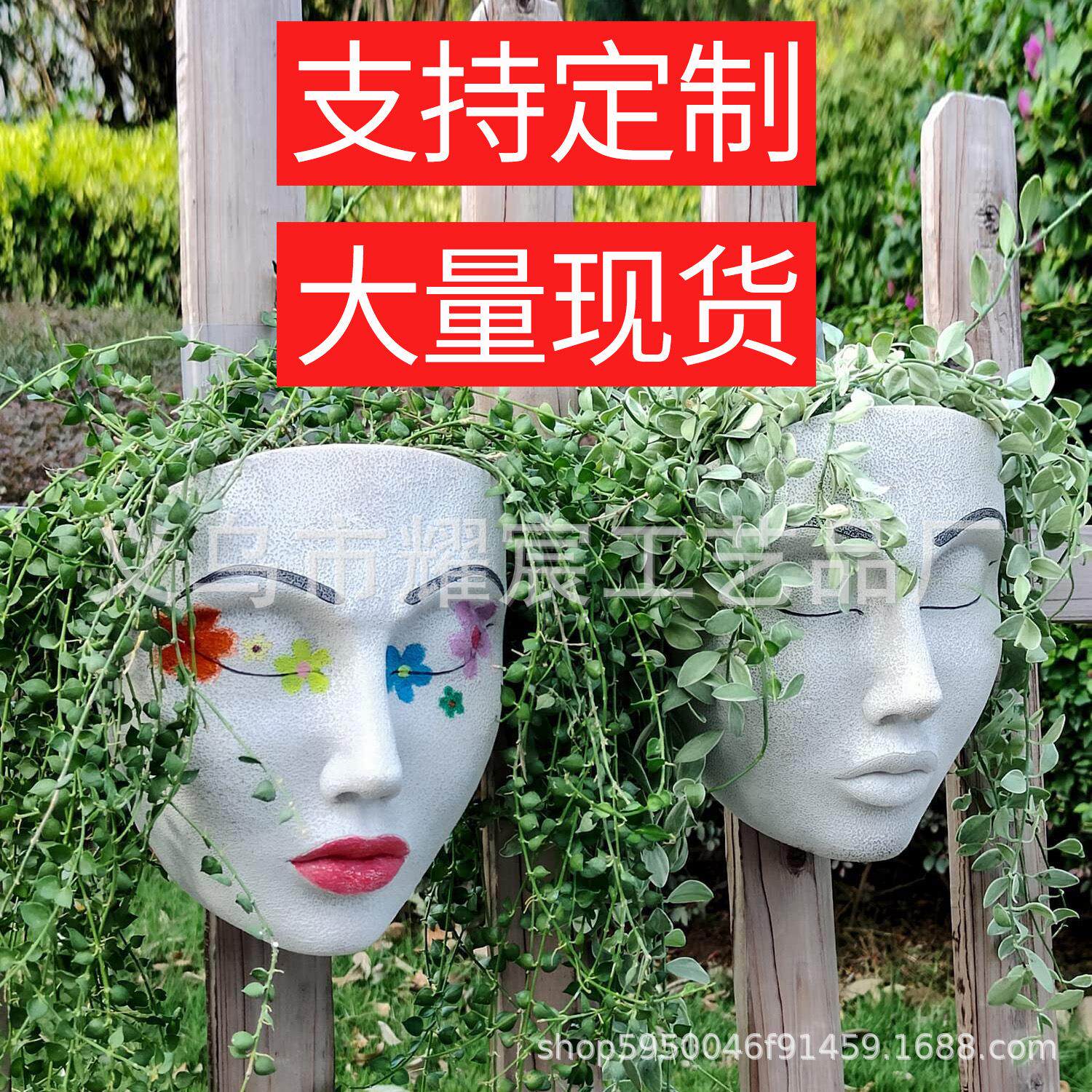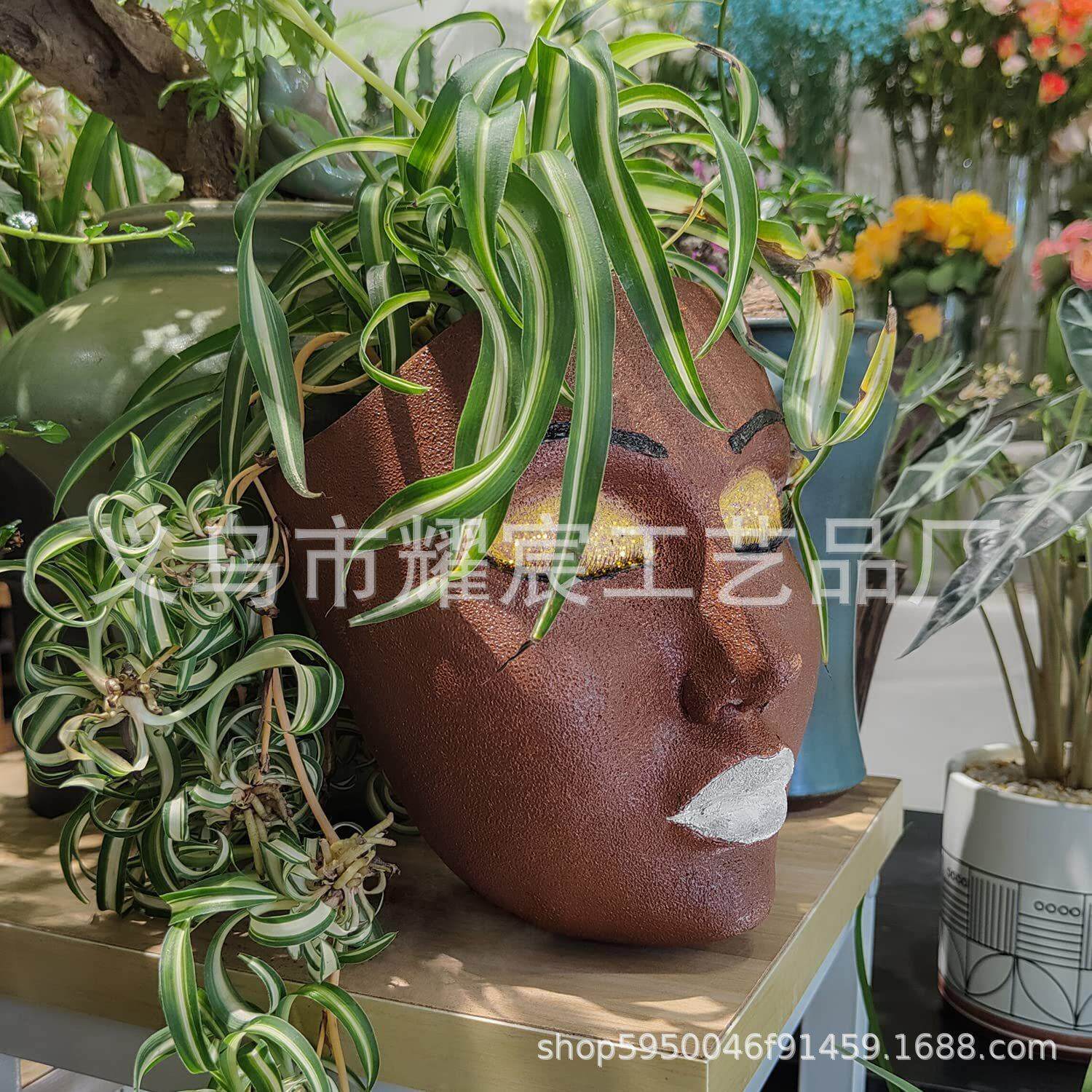 新品人脸花盆树脂工艺品壁挂式花盆室家居院花园墙壁装饰品