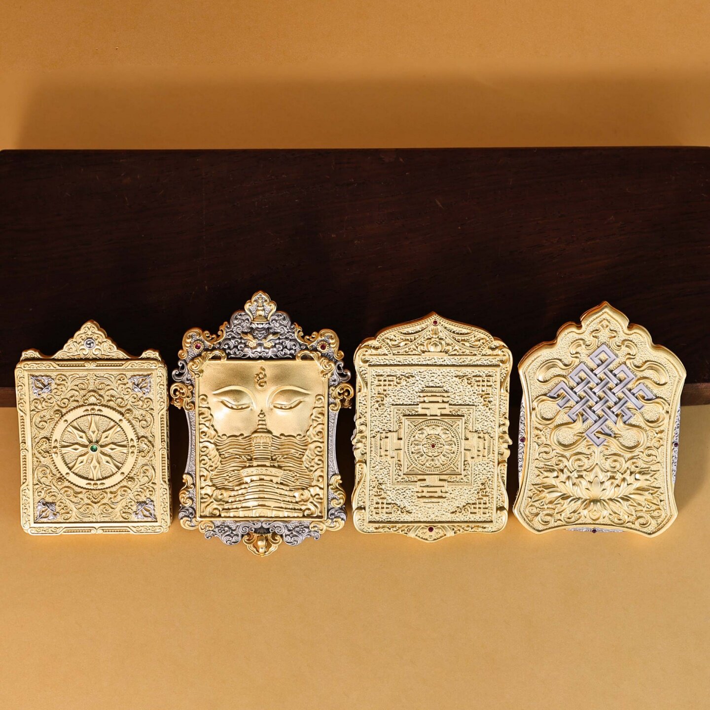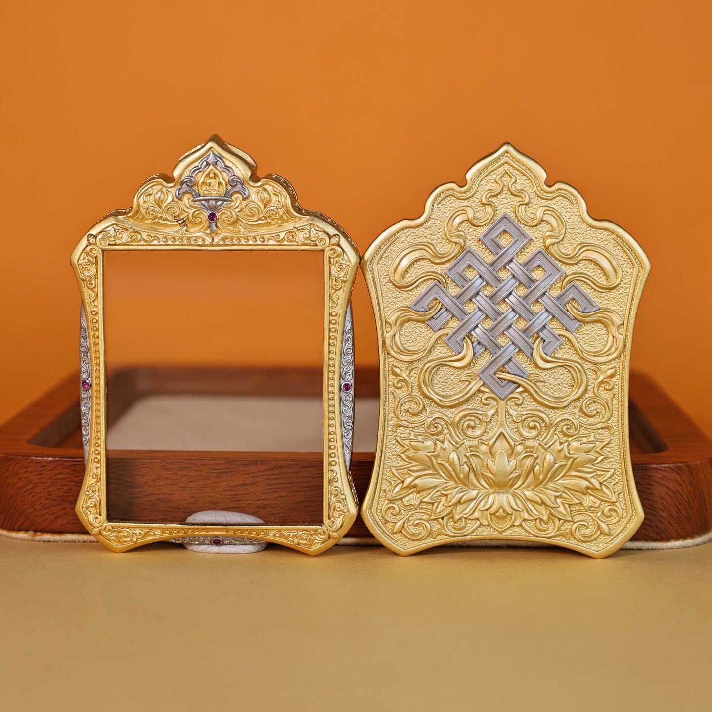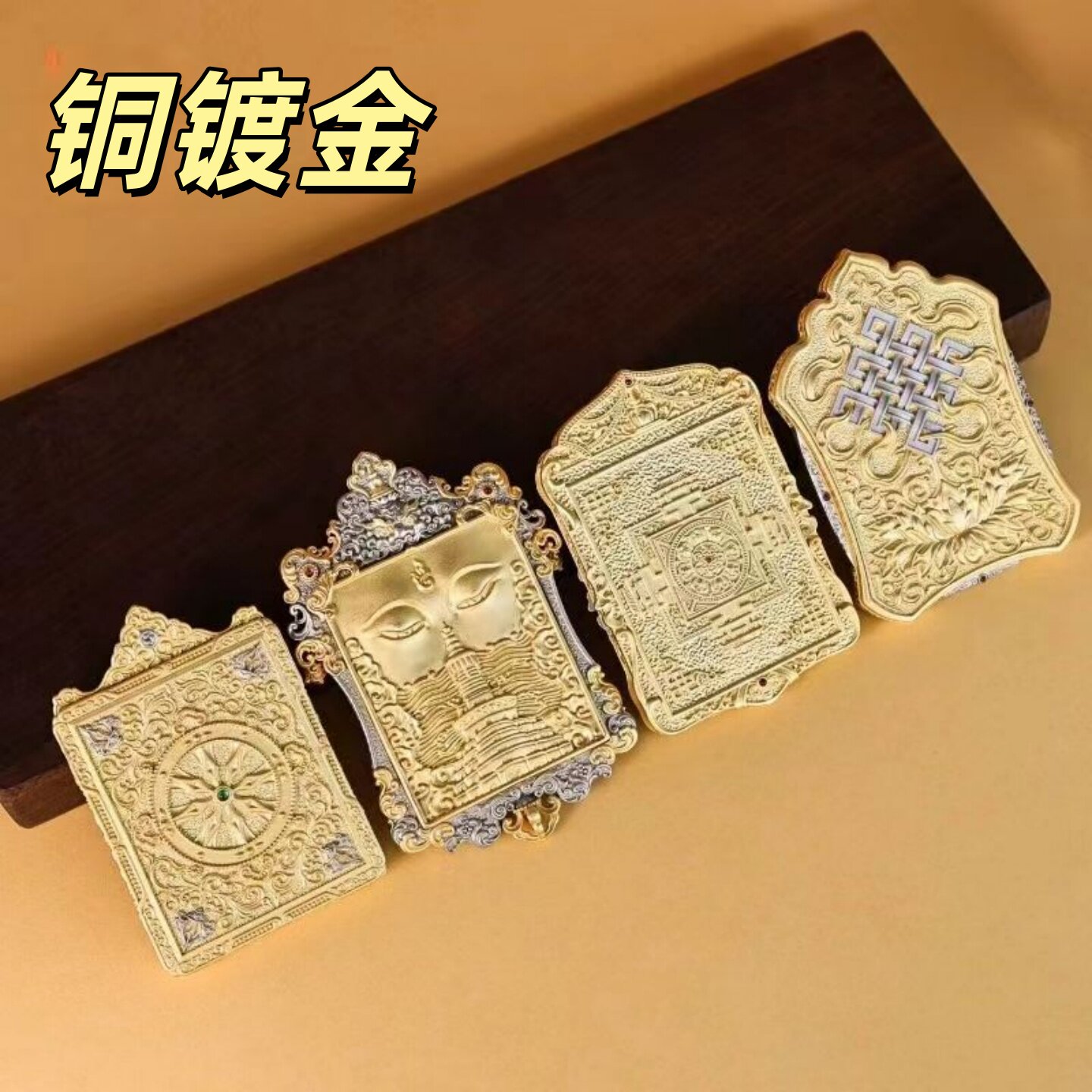 高端铜镀金高保色藏式吊坠新款唐卡壳子精工单面外壳浮雕嘎乌盒子