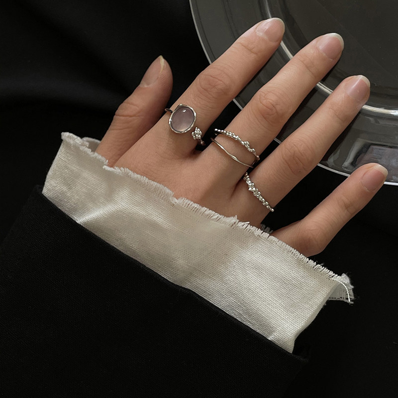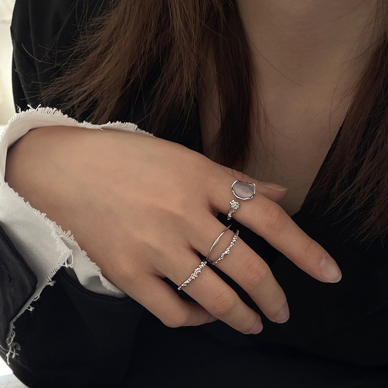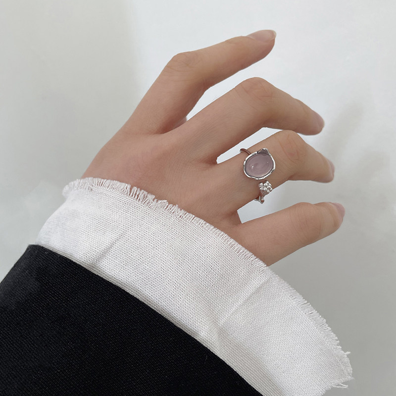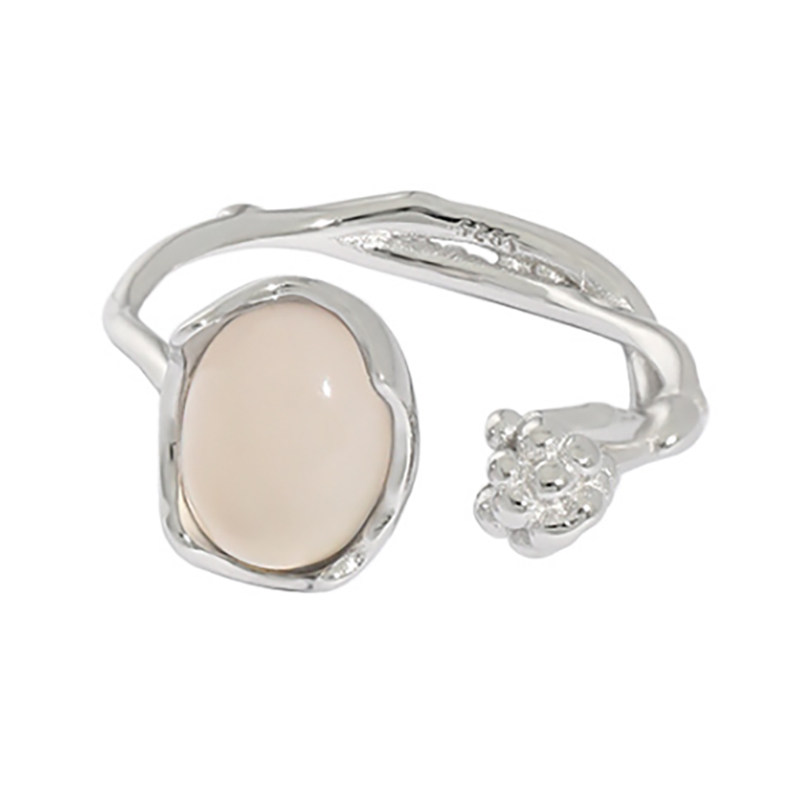 S925纯银设计戒指女小众不规则微镶玛瑙花蕾藤枝开口戒指个性时尚