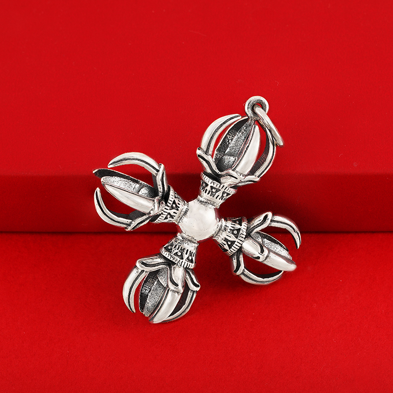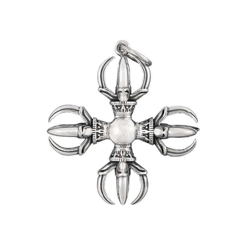 S925纯银十字金刚杵吊坠藏式民族风随身吊坠项坠DIY挂饰纯银吊坠