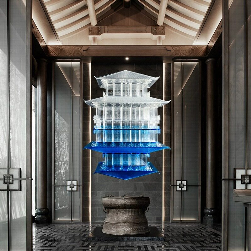 中国风古典建筑透明亚克力房子阁楼艺术仿真雕塑烟雨楼模型摆件