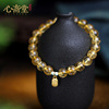 心斋堂【寻禅】正品天然巴西黄水晶手串999足金福字吊牌配饰手链