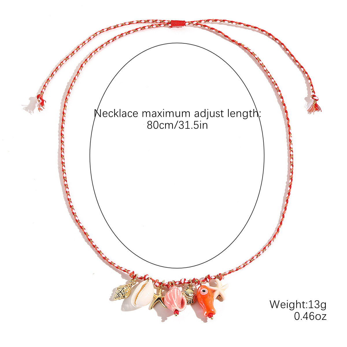 Summer Sea Wind Shell Starfish Necklace Colored Rope Ceramic