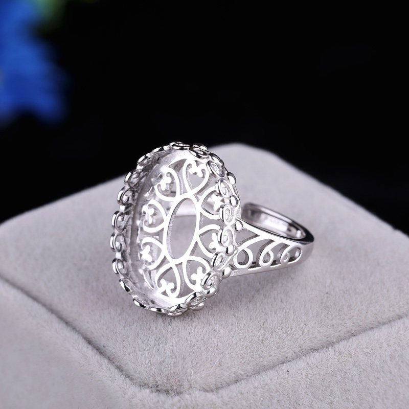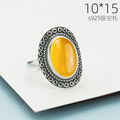 925纯银女款戒指空托镶嵌蜜蜡琥珀戒托绿松石戒指托14*19 15*20