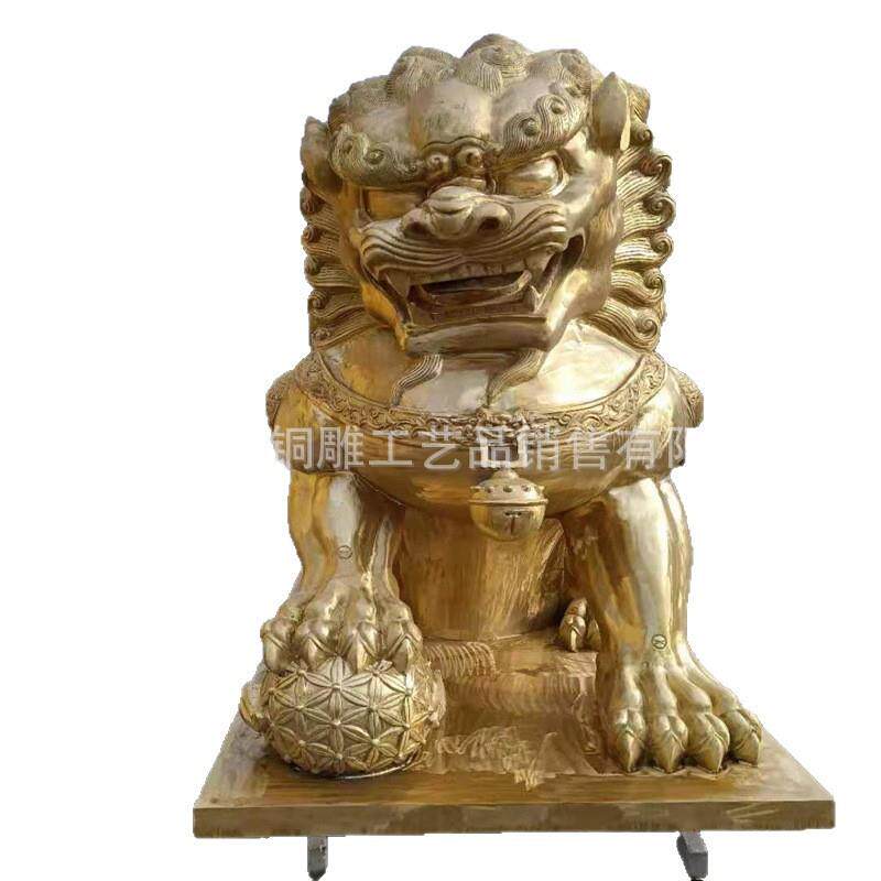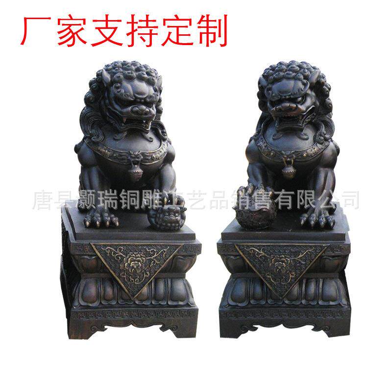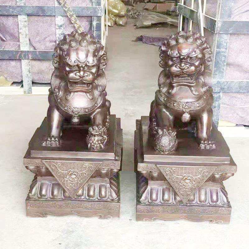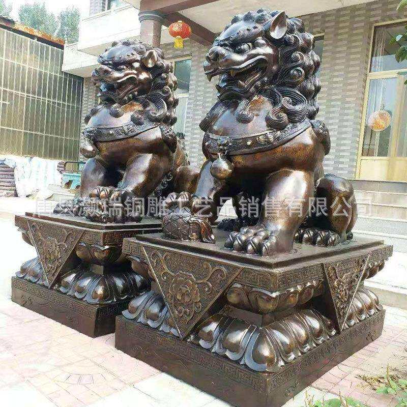 制作铜狮子雕塑中式仿古故宫狮子铜像一对摆件纯铜门狮生产厂灏瑞