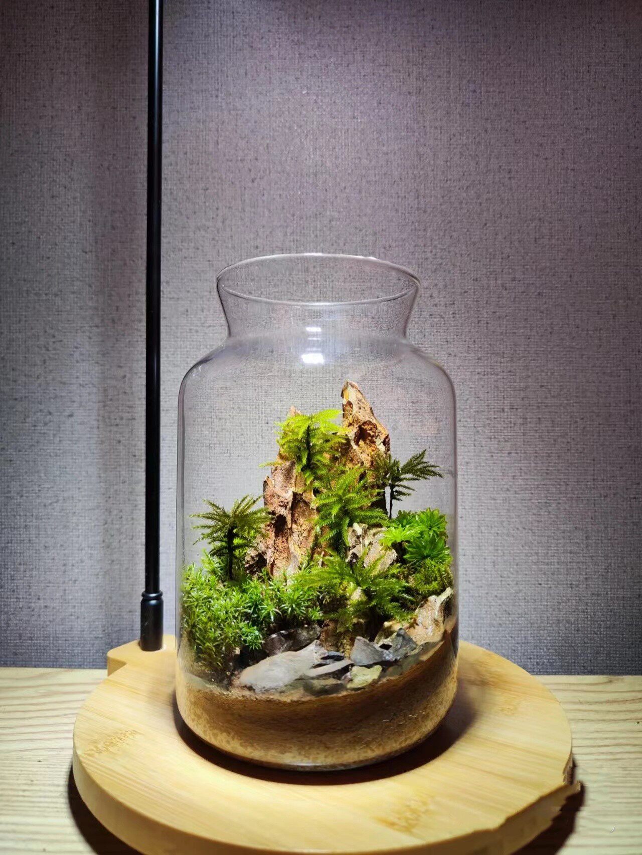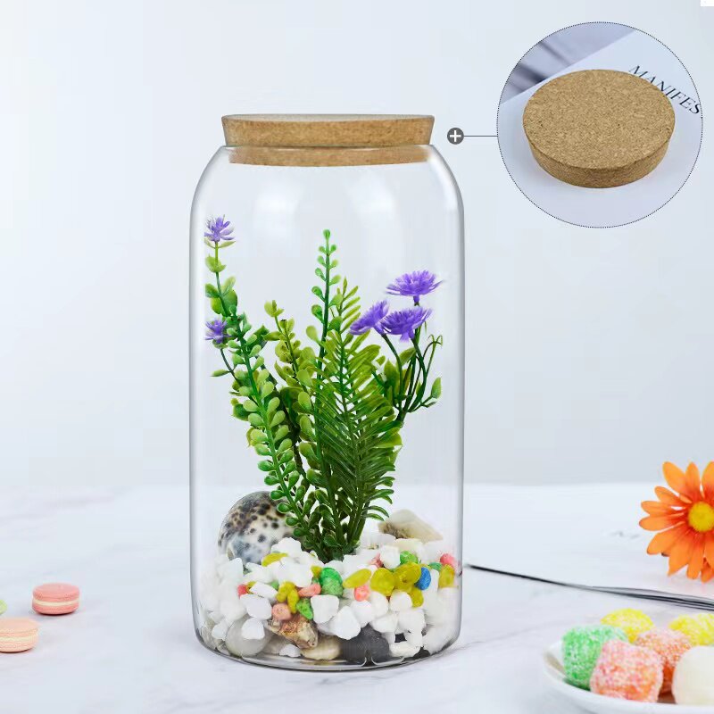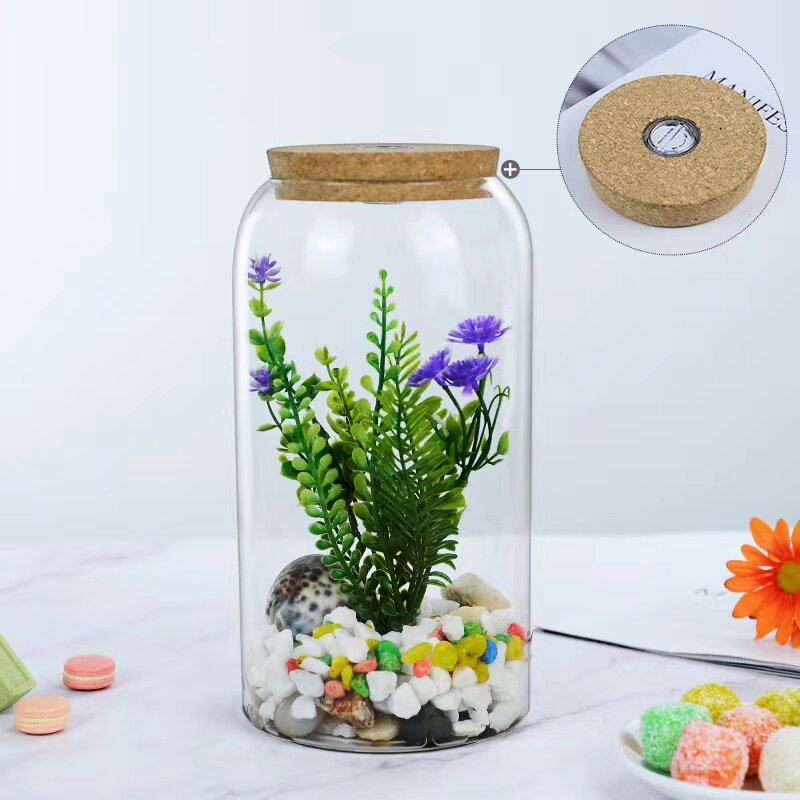 大容量直筒玻璃瓶带灯微景观造景容器高透明大口径玻璃缸打孔木塞