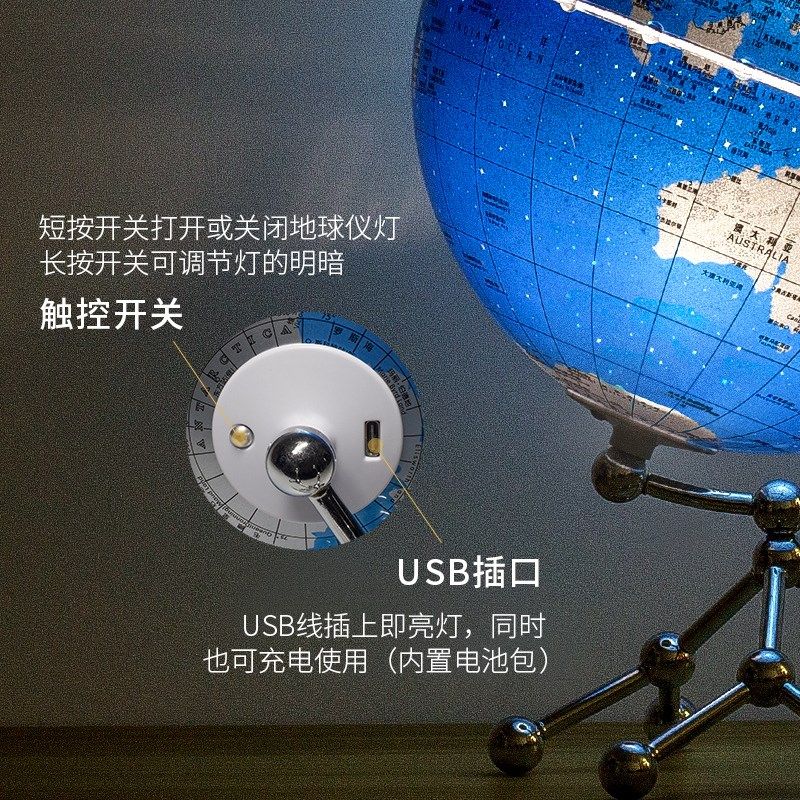 速发电充发光地球仪立体悬浮氛摆灯卧室台灯客厅书房办公室轻奢围