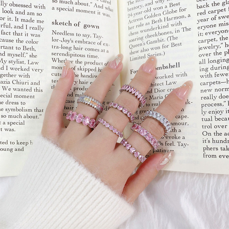 跨境欧美风水晶满钻戒指S925纯银轻奢锆石钻戒小众珠宝高级时尚