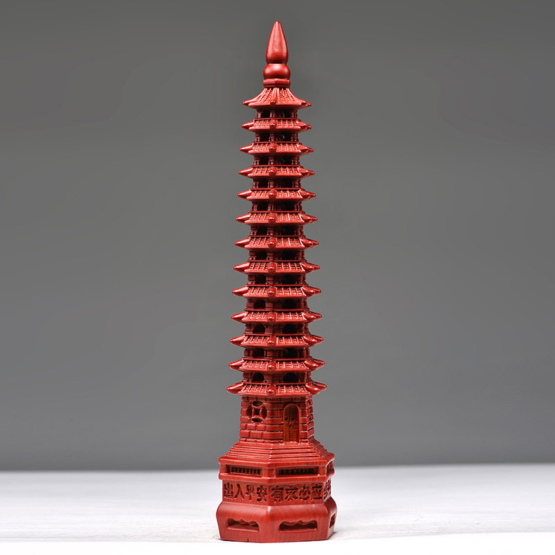 红色实木雕刻十三层文昌塔摆件纯木质13层9层装饰家居书房工艺品