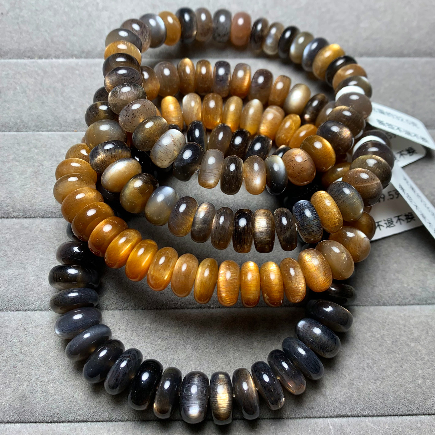 天然黑金骨干长石盘珠手串金黄色日光石随形手链饰品水晶情侣款女