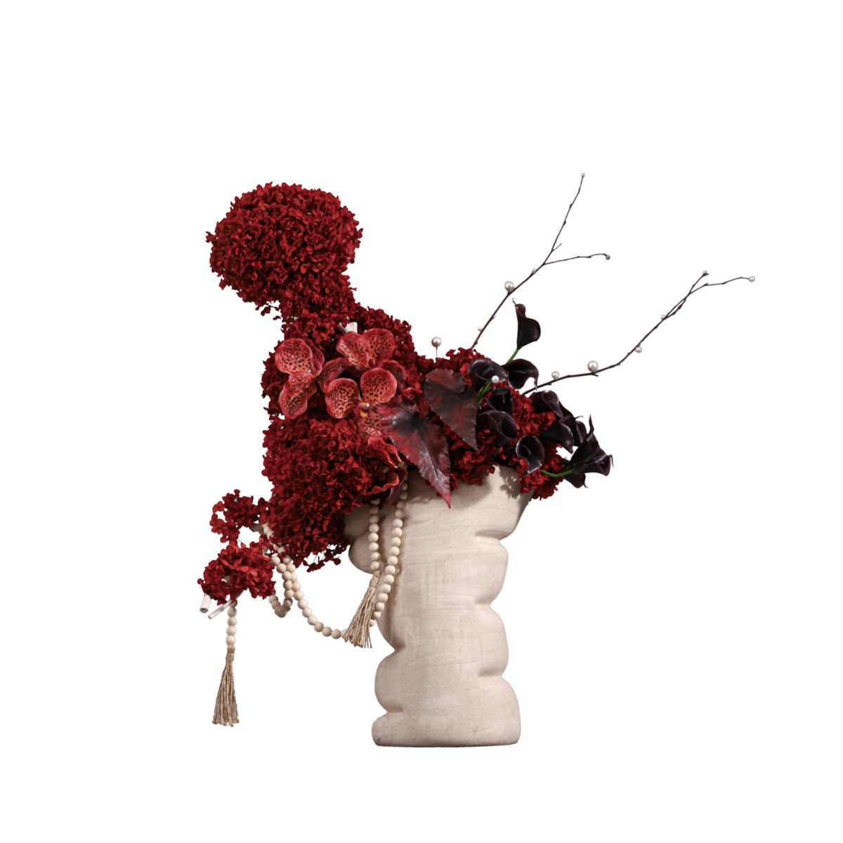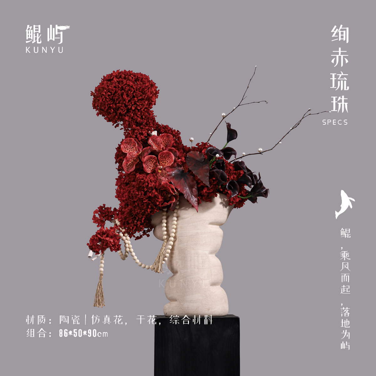 鲲屿 新中式红色系仿真花艺【绚赤琉珠】样板间酒店民宿玄关摆件
