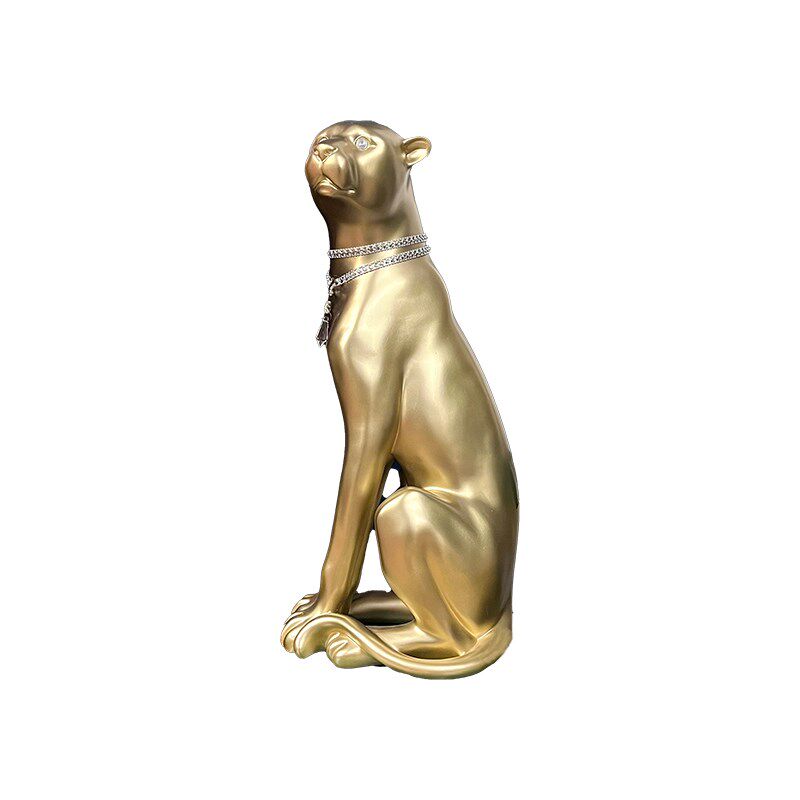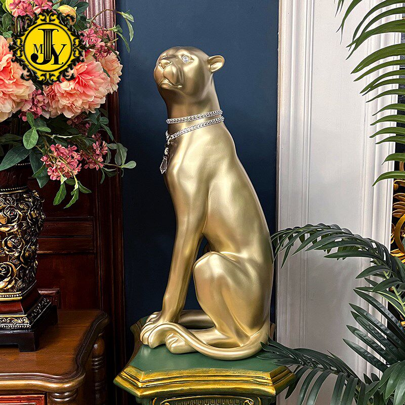 四十斤重工 法式别墅欧式客厅美式电视柜落地黑色动物大豹子摆件